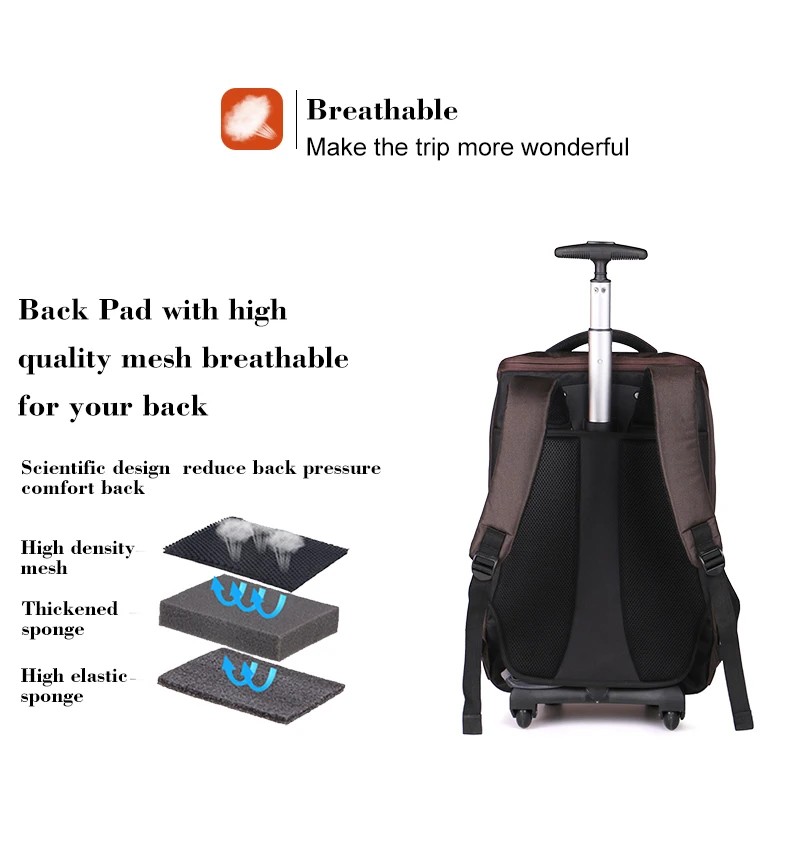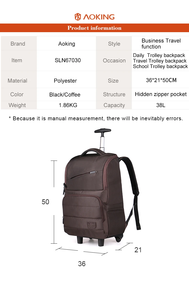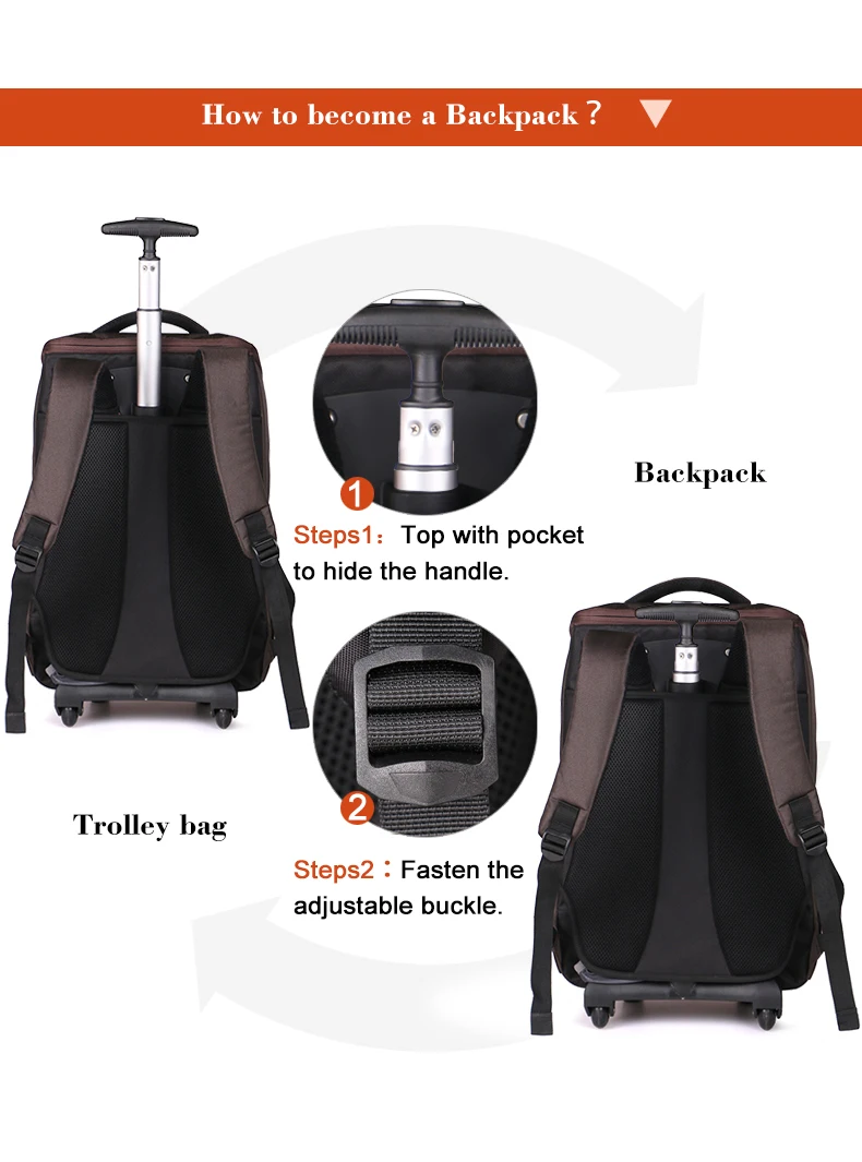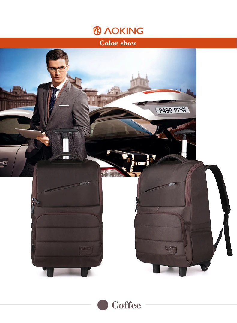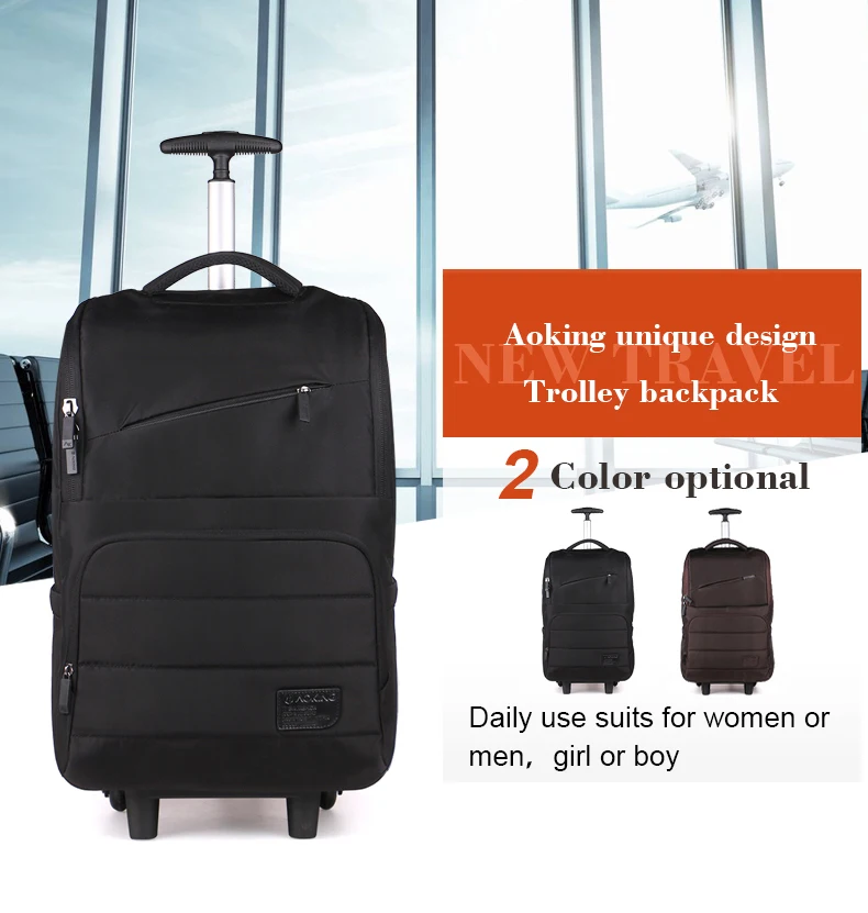 Aoking Nylon Waterproof Travel Luggage Trolley Backpack Women Men Lightweight Luggage Bag for Laptop Roll Wheeled Trolley Bags