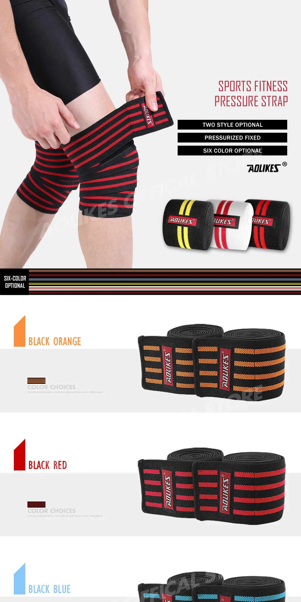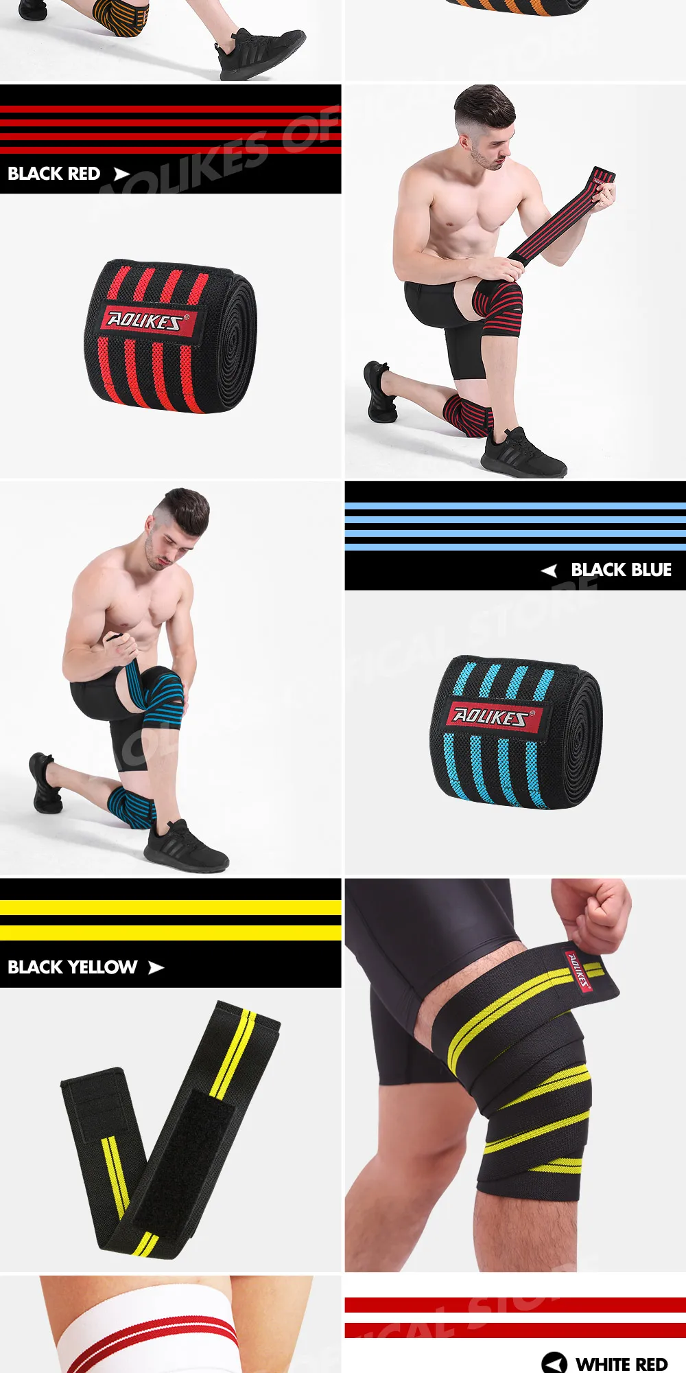 AOLIKES 1pcs 200*8CM Knee Wraps Men’s Fitness Weight Lifting Sports Knee Bandages Squats Training Equipment Accessories for Gym