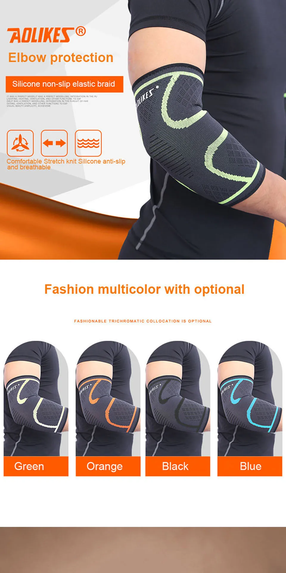 AOLIKES 1PCS Elbow Support Compression Sleeve Elbow Brace Protector for Workouts Weightlifting Arthritis Volleyball Tennis(1PCS,not 1 Pair)