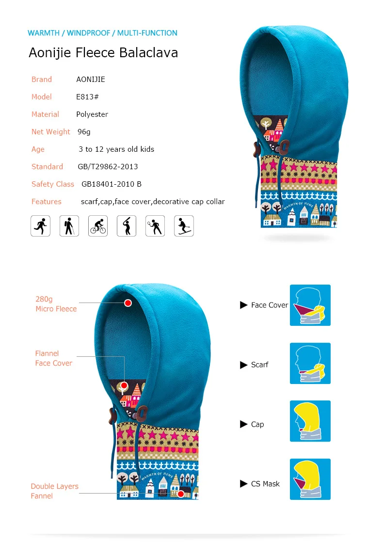 -FLEXIBLE WEAR — The boys/girls balaclava has various kinds of wears: CS mask, hat, scarf, decorative cap collar, etc. Your whole face can be wrapped when cold and you can pull down the snow mask to your chin or nose (based on the actual use) when feel a little hot. A great winter facemask for home and outdoor
