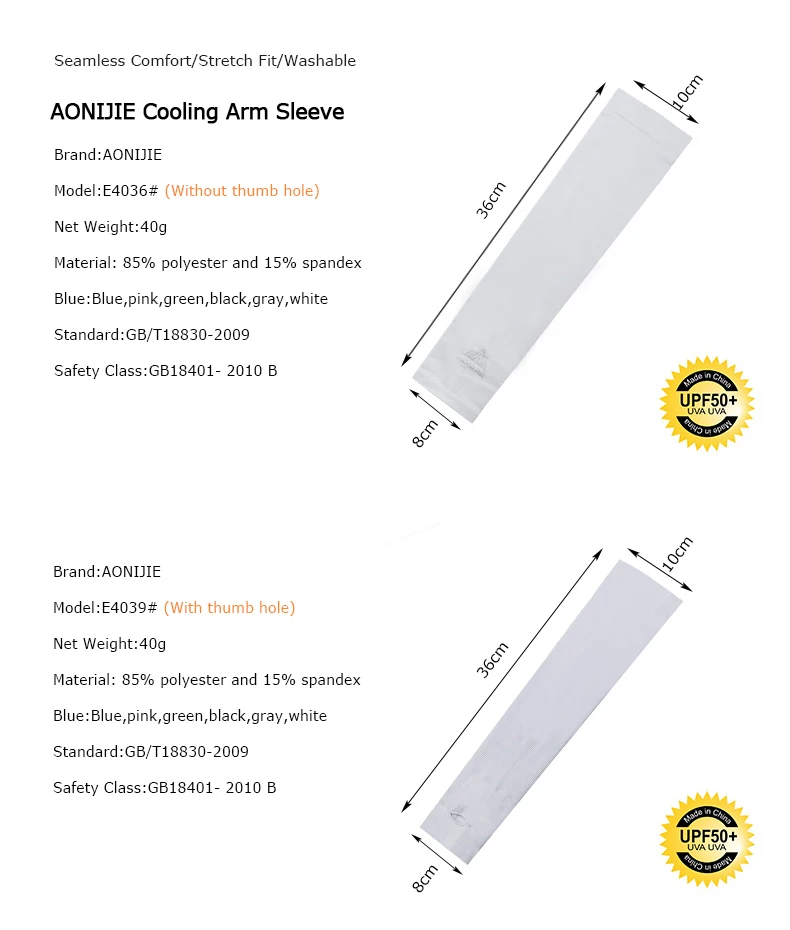 AONIJIE E4036 One Pair UV Sun Protection Cooling Arm Sleeve Cover Arm Cooler Warmer For Gloves Running Golf Cycling Driving