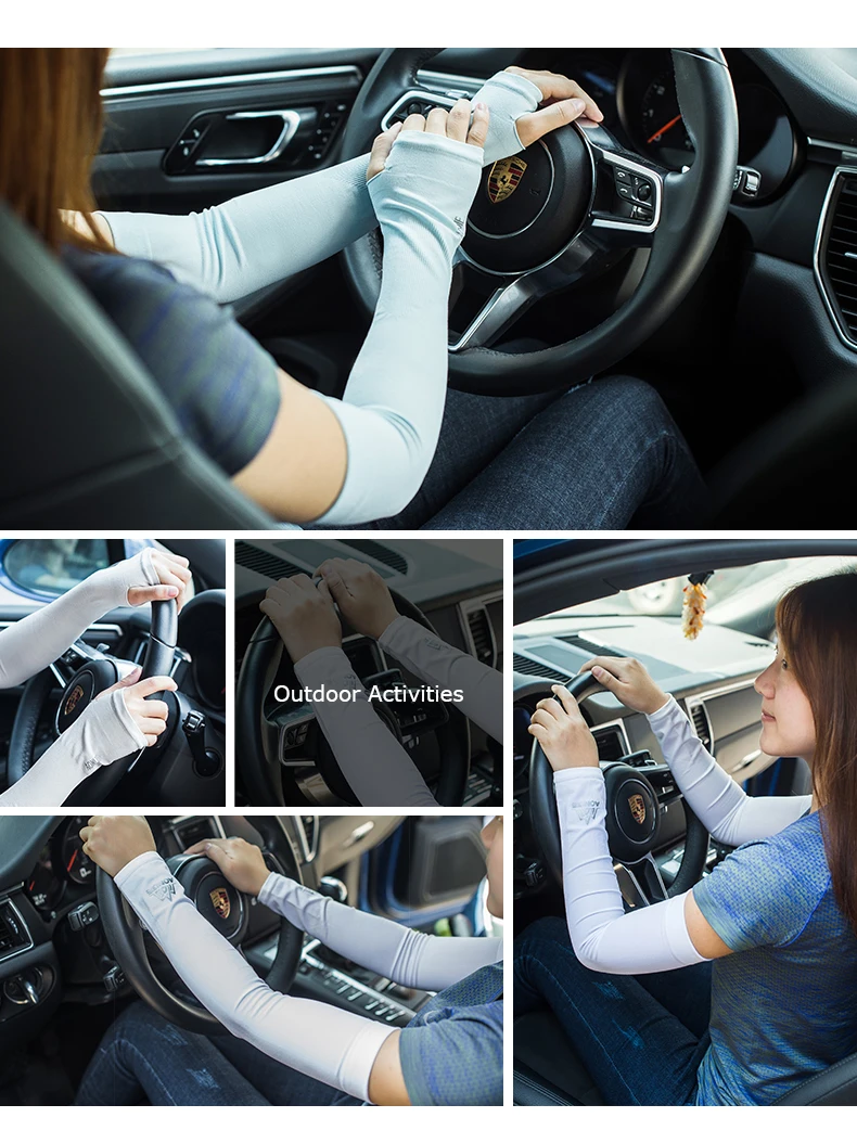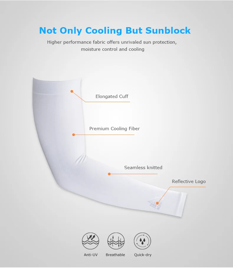Arm Cooler is the perfect accessory for summer training, racing and recovery. Its compression fit reduces damaging muscle vibrations, minimizing muscle fatigue and soreness. It makes you feel cool in hot weather when you do summer activities. Try this when you drive, it helps to protect your skin and feel cooler than bare skin. It is a special moisture-radiating material that actually offers cooling effect.