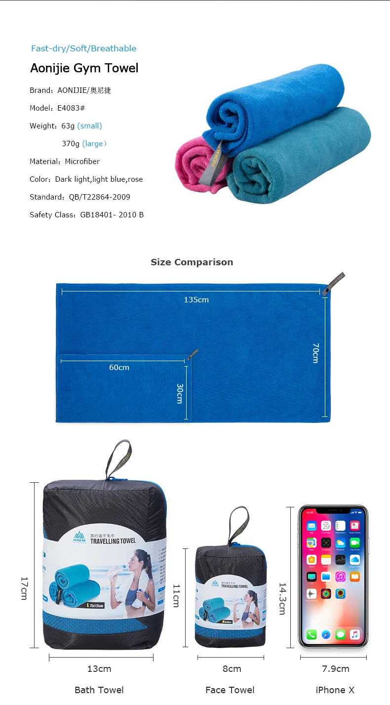 1pcs AONIJIE Outdoor quick-drying towel