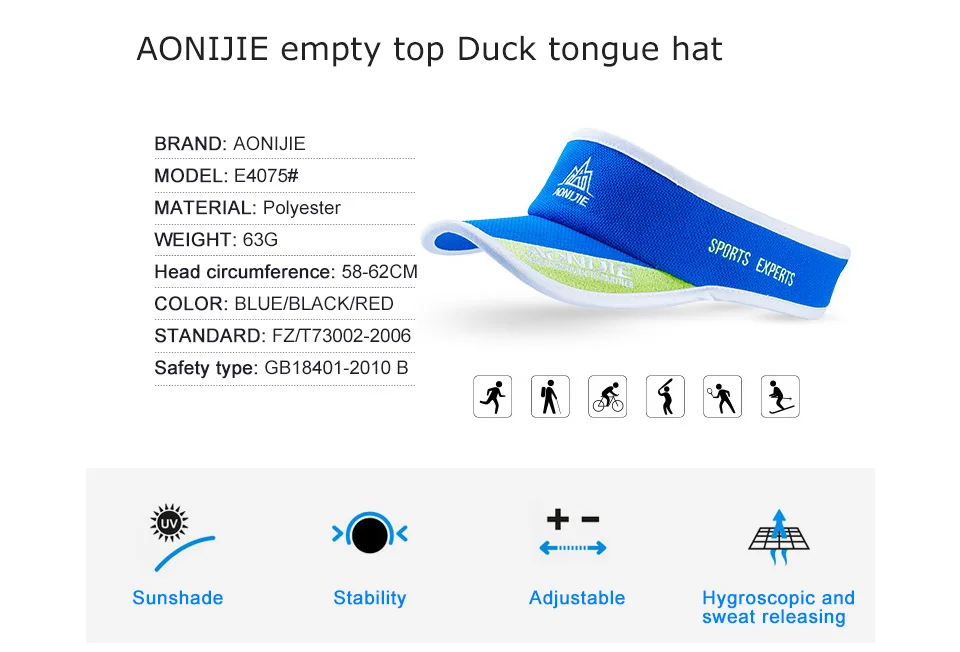 AONIJIE Women Men Summer Outdoor Sport Marathon Visor Cap Ultralight Quick Dry Running Hat Golf Tennis Anti UV cap