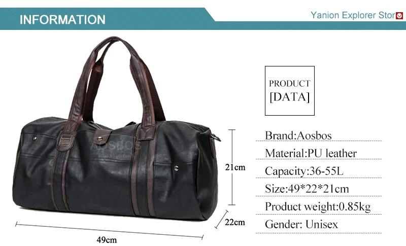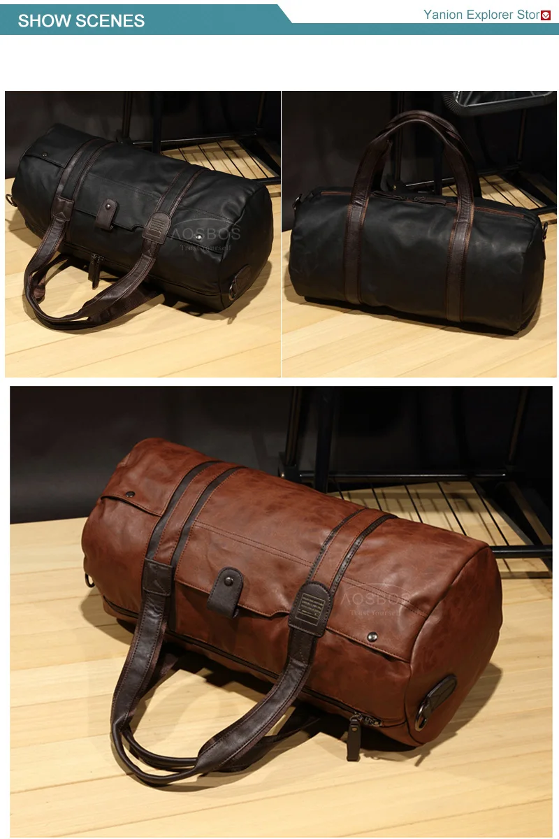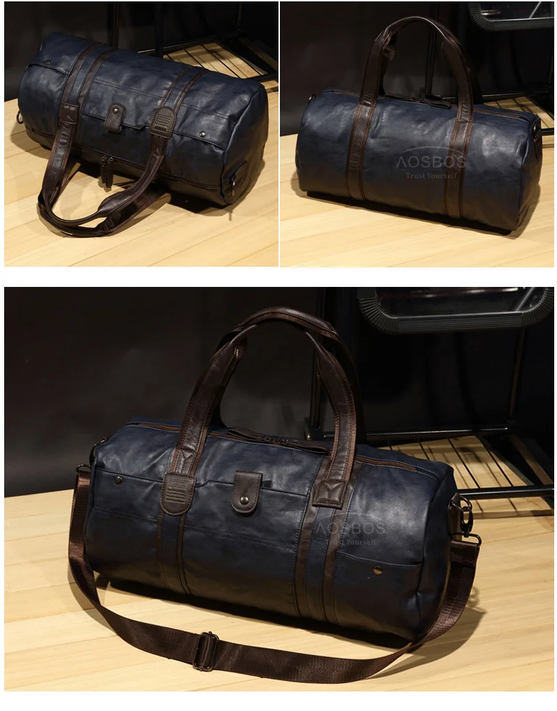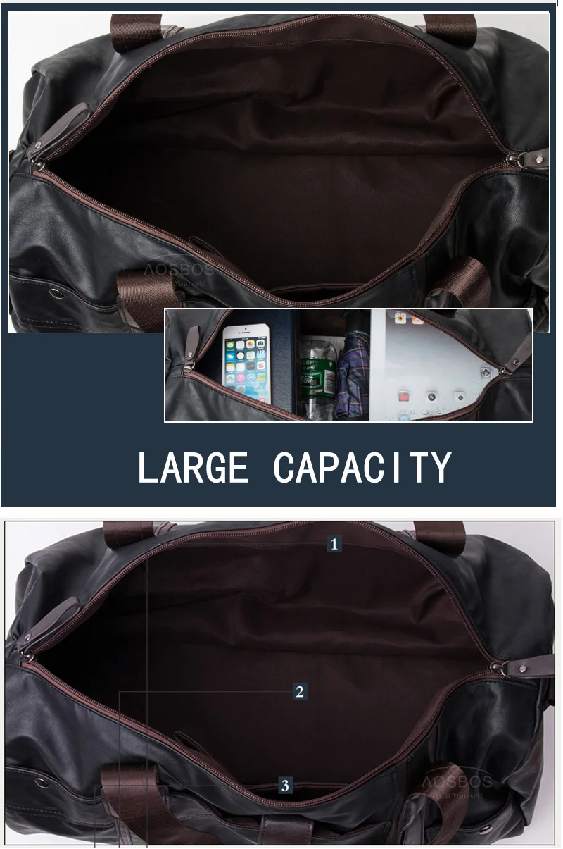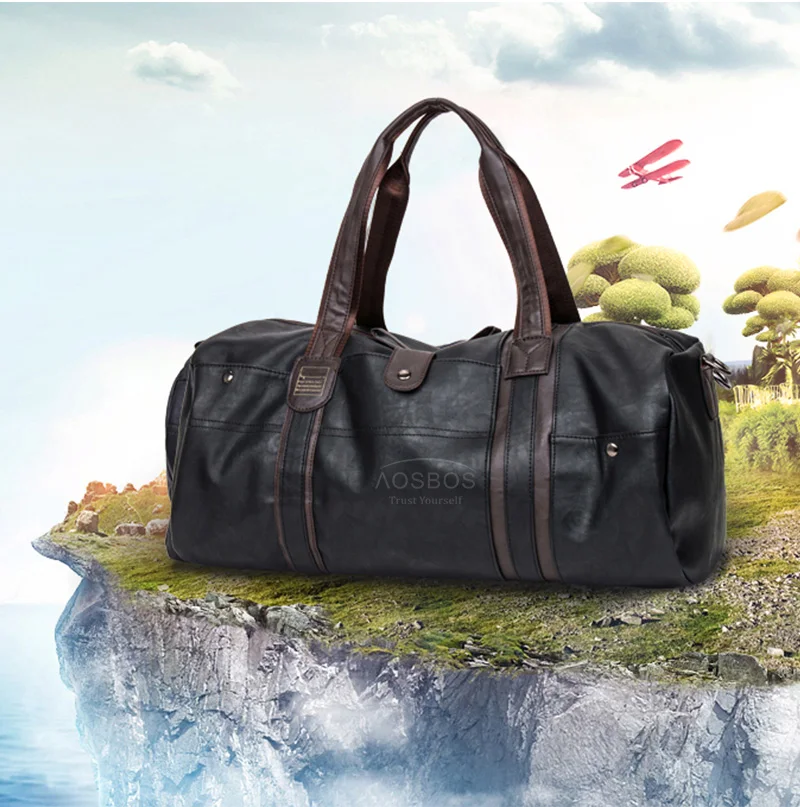 Aosbos PU Leather Gym Bag Large capacity Sports Bags for Women Men Fitness Training Bag Outdoor Travel Duffel Storage Handbags