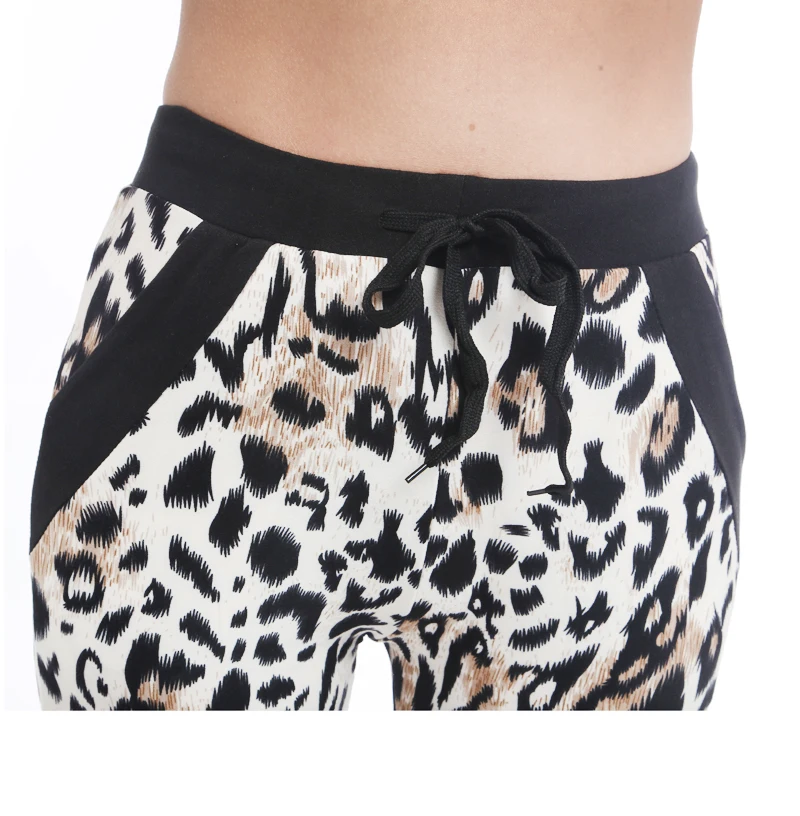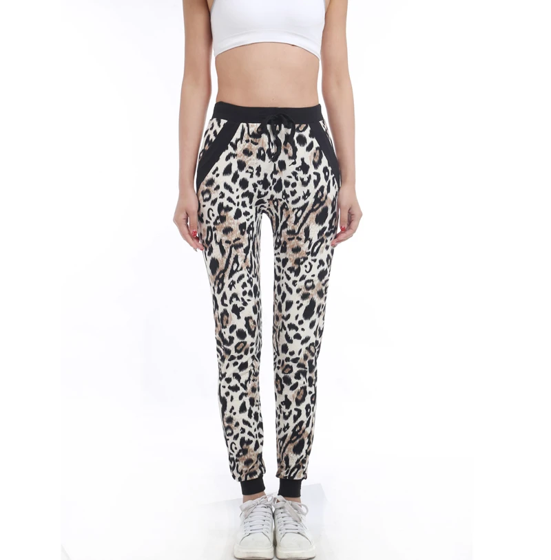 [aosheng] New Autumn Winter 2018 Fashion High Waist Stitching Pockets Leopard Printed Elastic Ankle-length Pants Women Y033