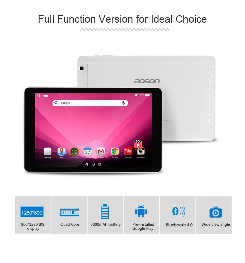 AOSON 10.1 inch 1/2GB+16/32GB Android 6.0 Quad Core Tablets pc 800*1280 IPS Dual Cameras Bluetooth WIFI 5000mAh Hot sale Tablets