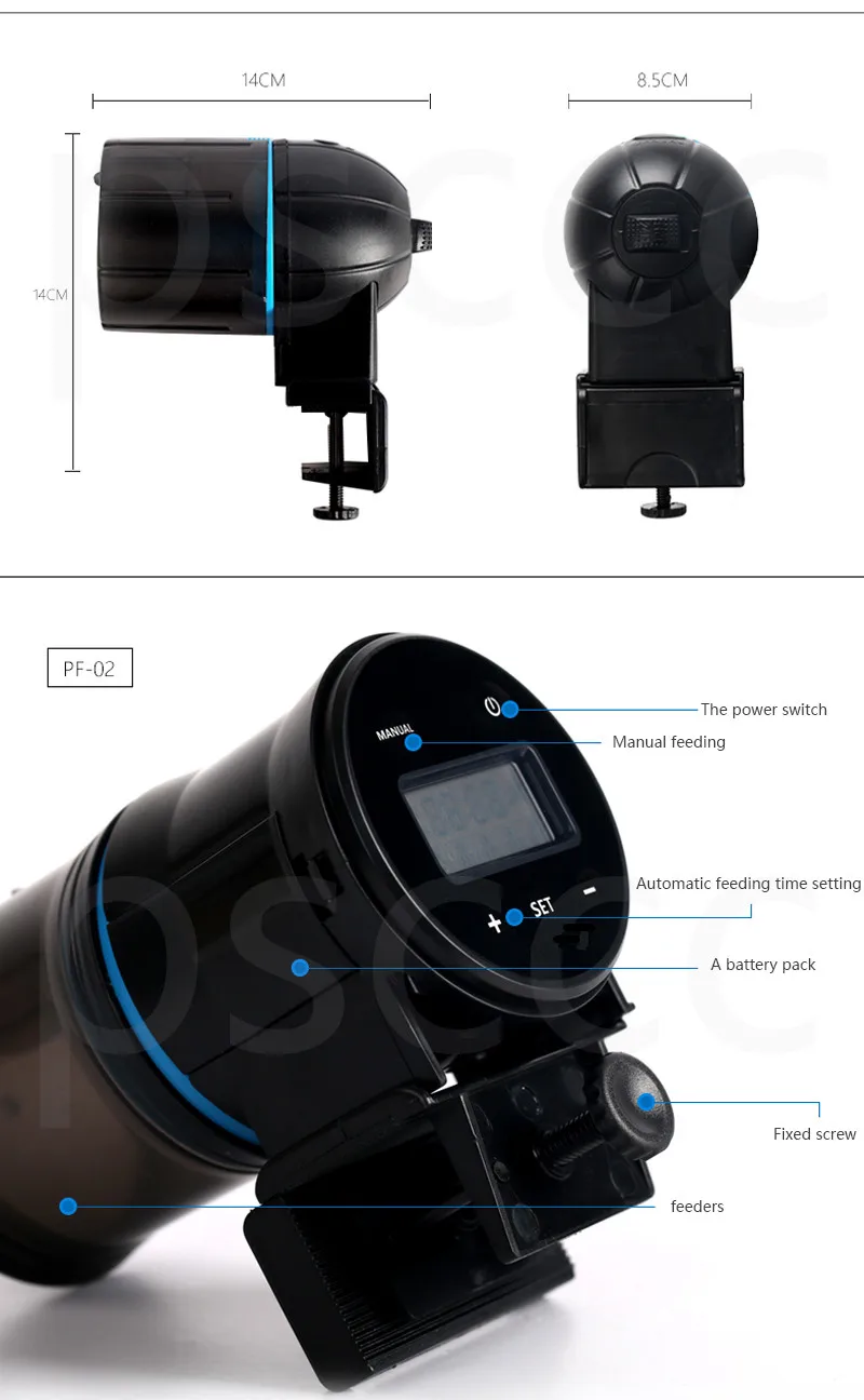Aquarium automatic feeder, digital display, adjustable feeding device. Fish feeding device.Clip type feeder