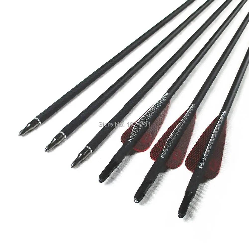 Archery Arrows 340/400/500 Spine Carbon Fiber Arrows For Hunting Shooting 28/29/30 inch Pattern Shaft With Vanes Pack of 6