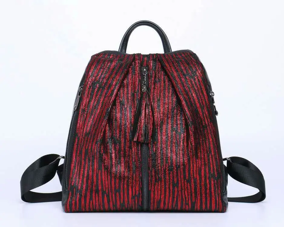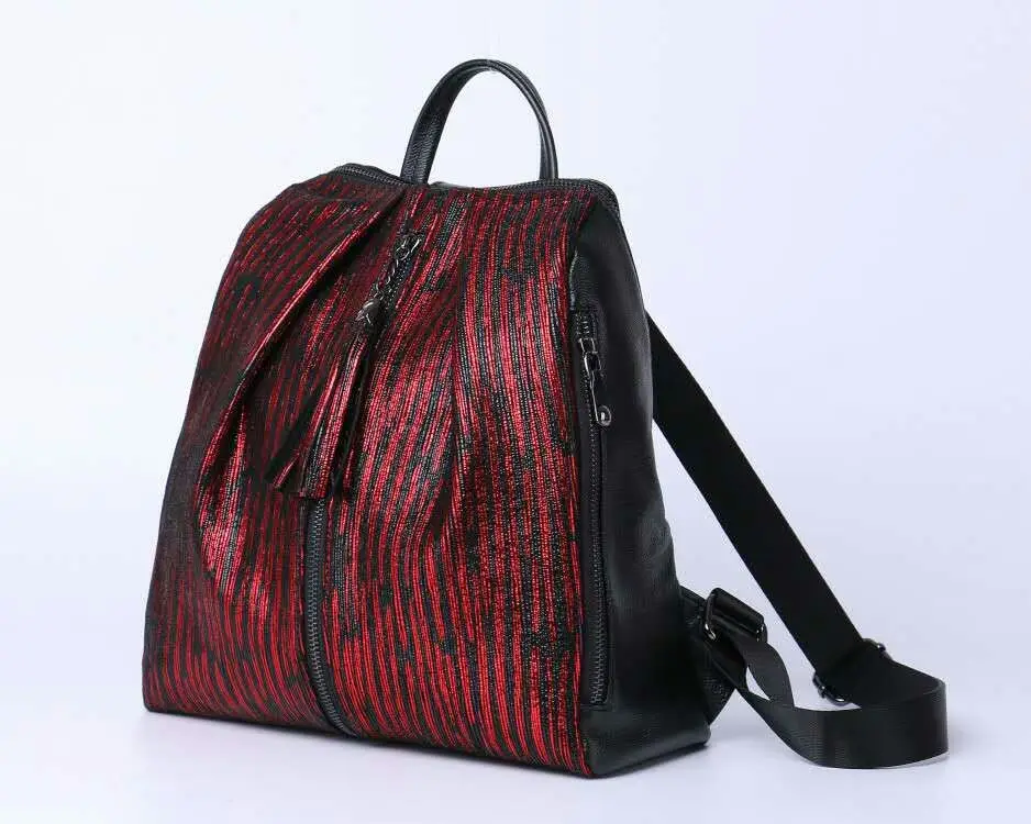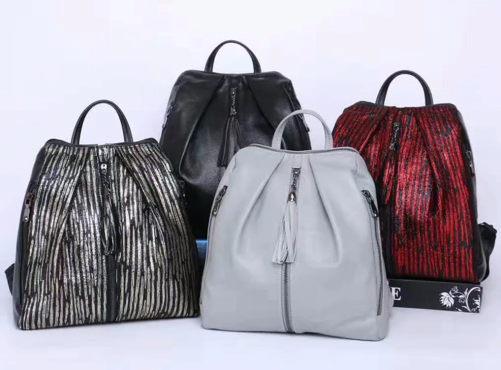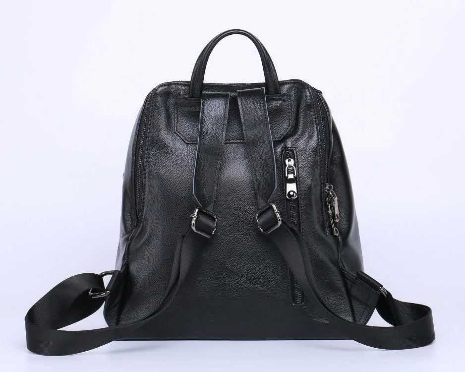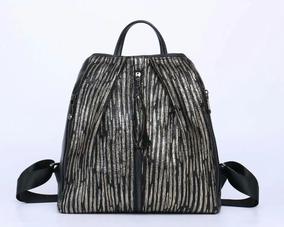 Arliwwi Brand Elegant Women Black And Gold Backpack 100% REAL LEATHER Large Capacity Back Bags