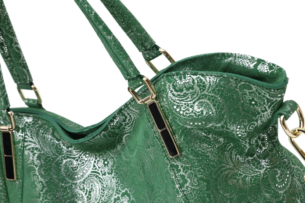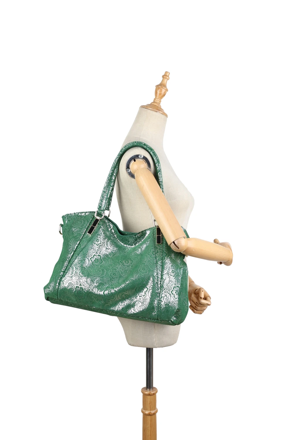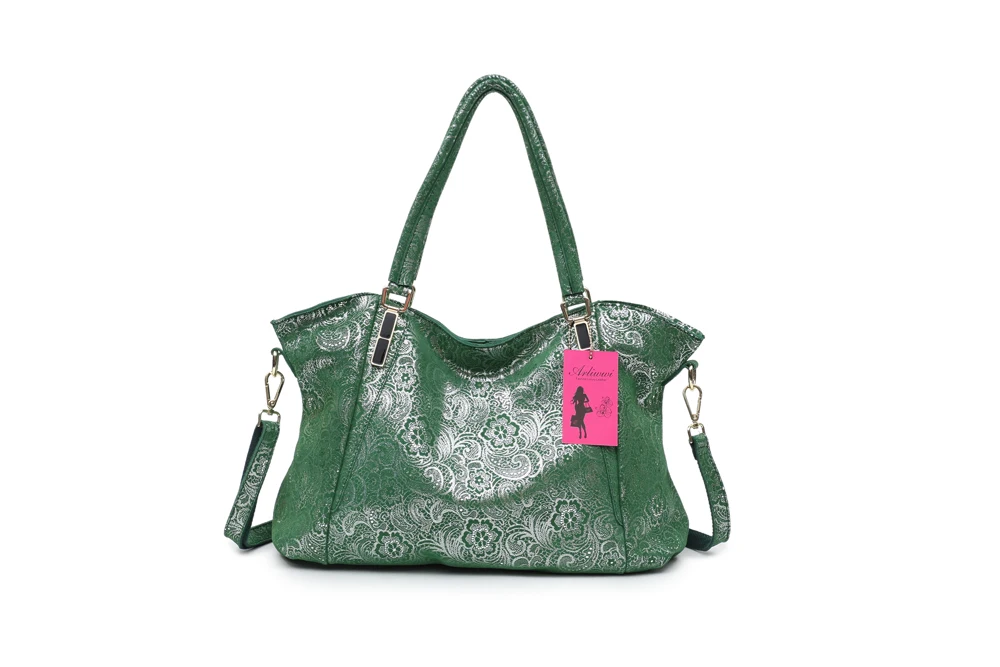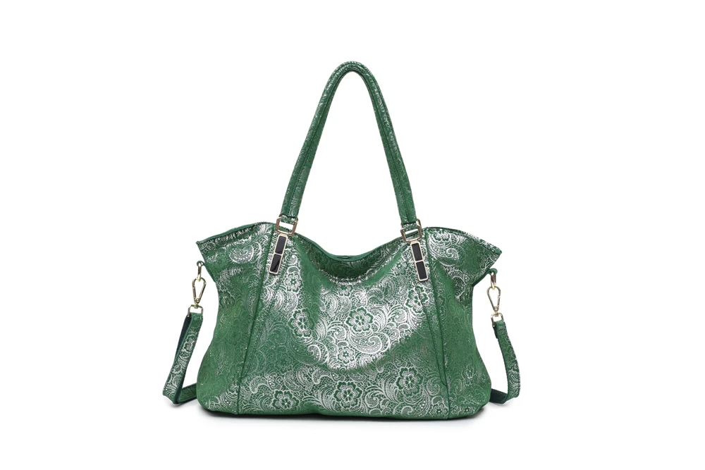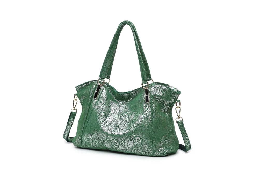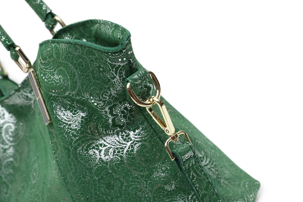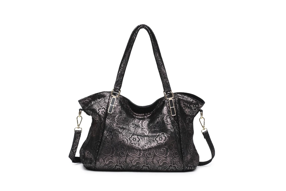 Arliwwi Brand New Fashion Sweet Lace Flower REAL LEATHER Shiny Women Big Shoulder Handbag Female Elegant Suede Leather Bags