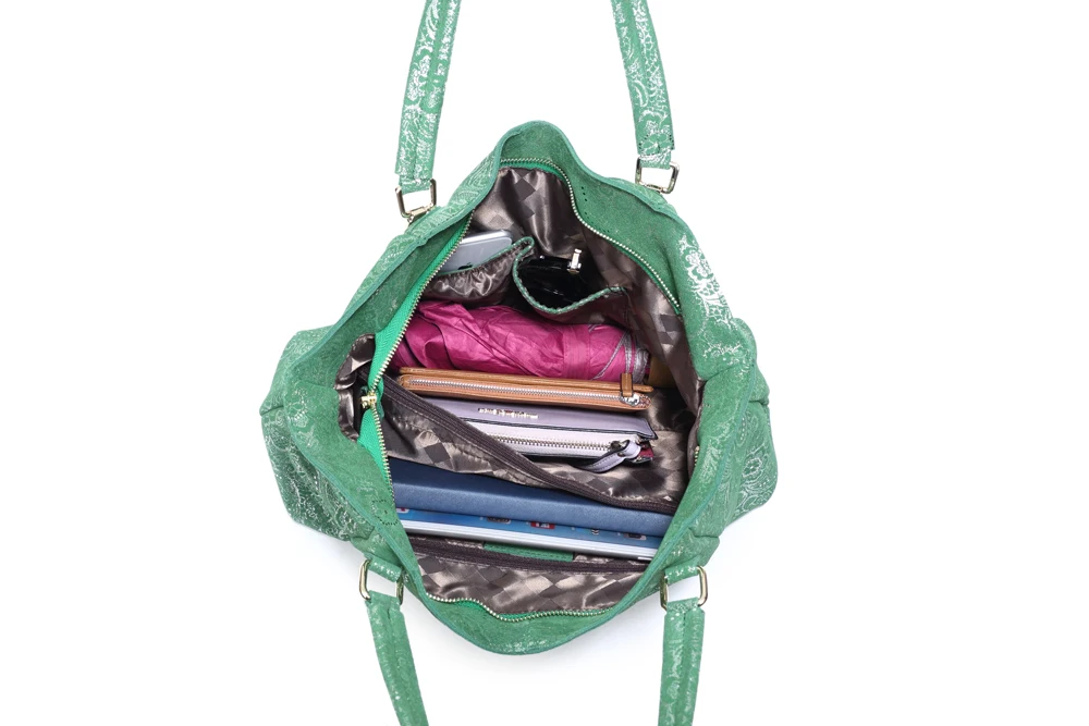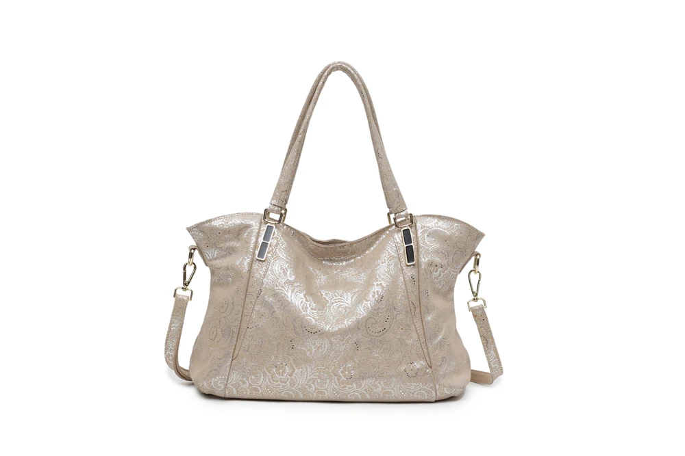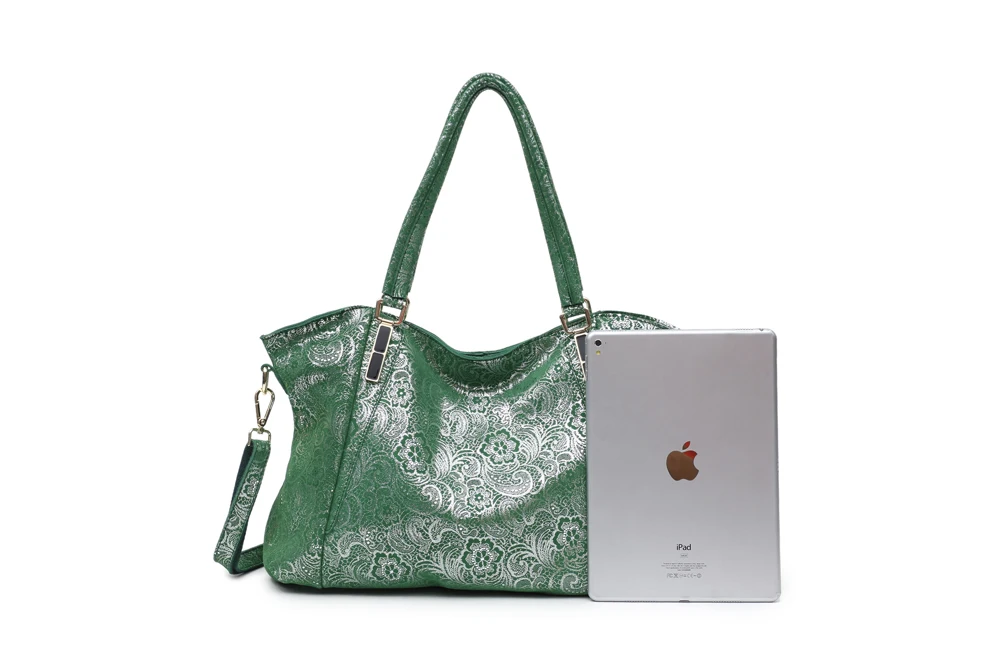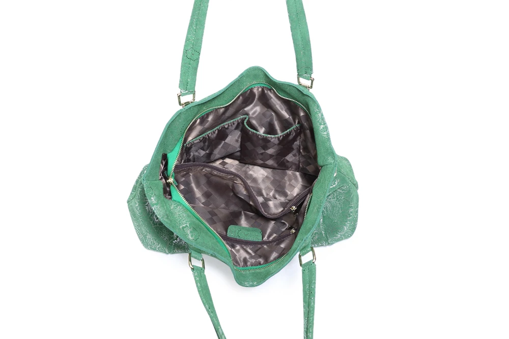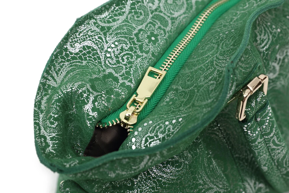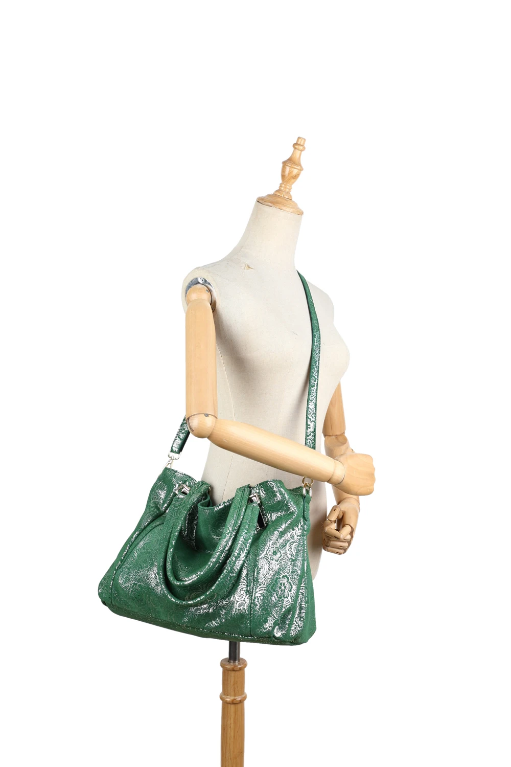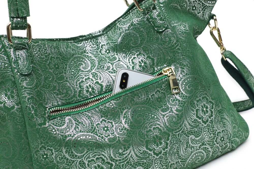 Arliwwi Brand New Fashion Sweet Lace Flower REAL LEATHER Shiny Women Big Shoulder Handbag Female Elegant Suede Leather Bags