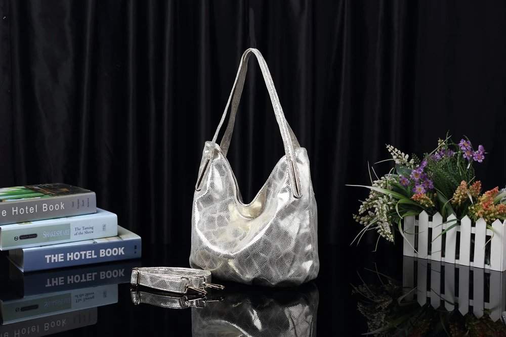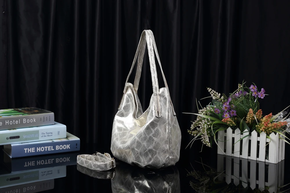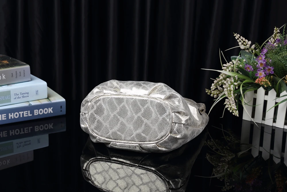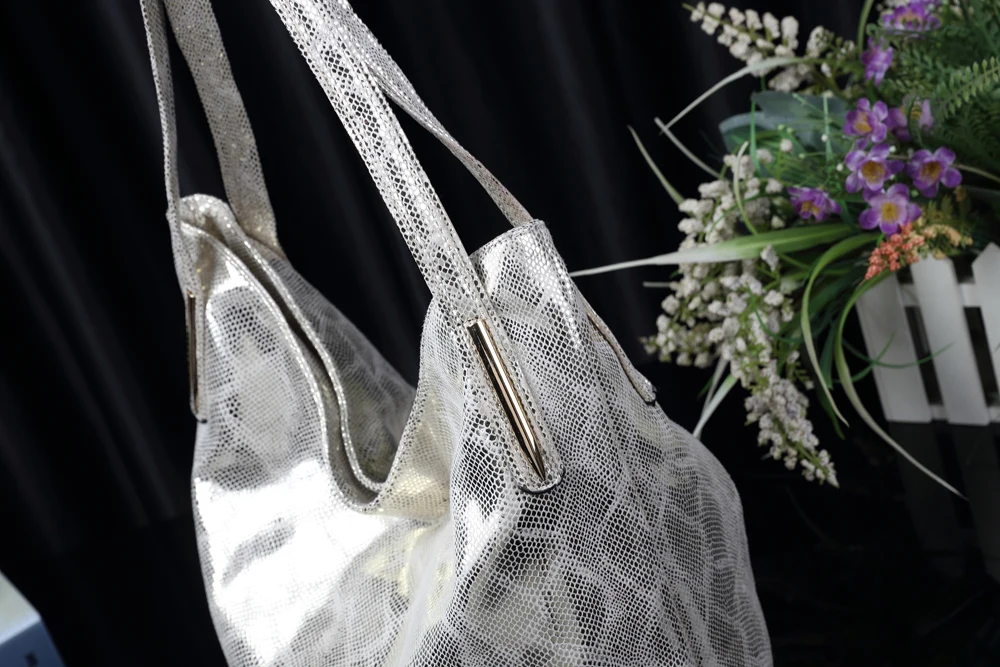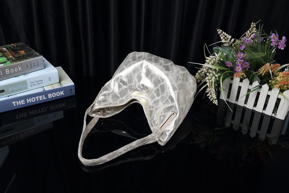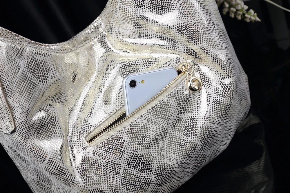 Arliwwi Factory SALES Elegant Medium Shiny Women Shoulder Bag Female Elegant Snake pattern print Gold Hobos Handbags For Lady