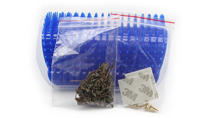 Which is equipped with cat mint to attract the cat to itch, the brush can be easily removed to clean and install.
