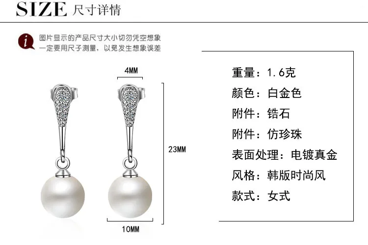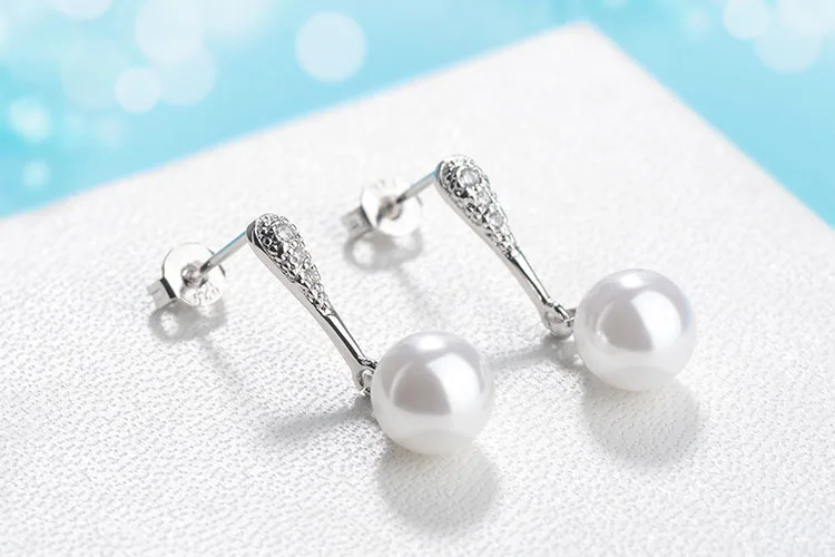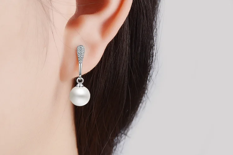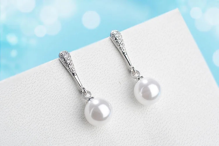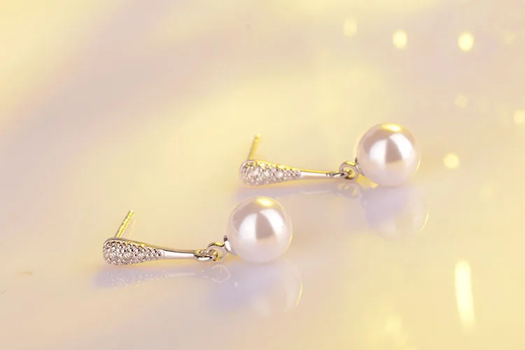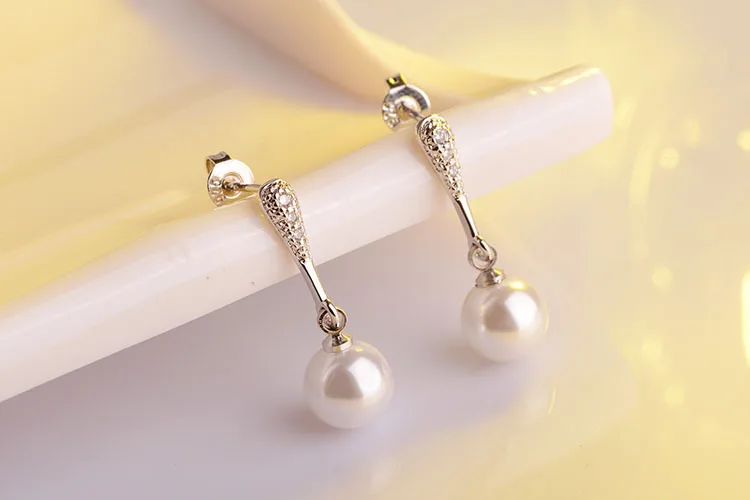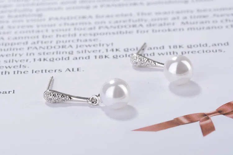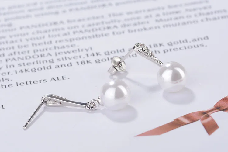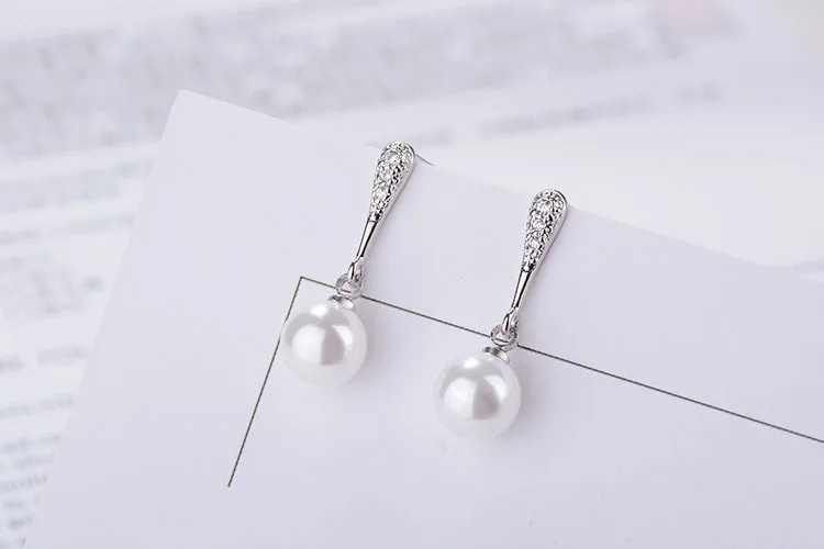 Artificial Pearl Earrings For Women Cubic Zirconia Fashion Wedding Cute White Pearl Push-back Stud Earring Romantic Jewelry 2018