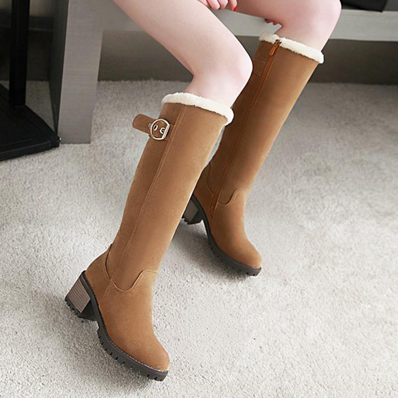 ASILETO Women Winter boots Knee High Boots Big Size 43 Brand Women Shoes woman snow boots warm short Plush Women shoes botasB674