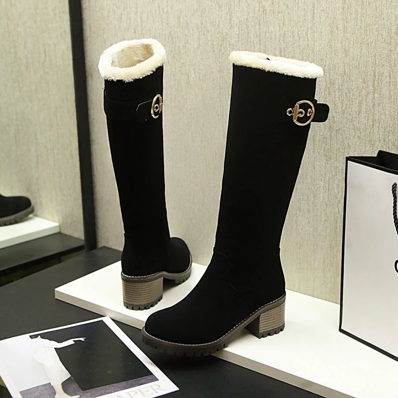 ASILETO Women Winter boots Knee High Boots Big Size 43 Brand Women Shoes woman snow boots warm short Plush Women shoes botasB674