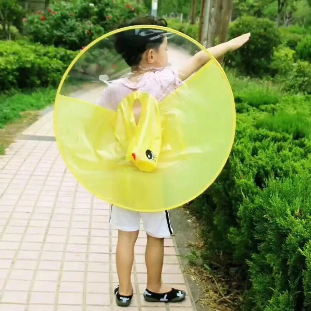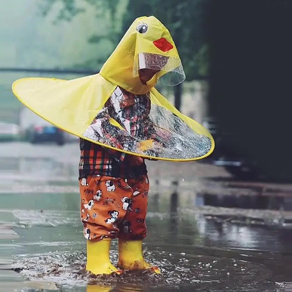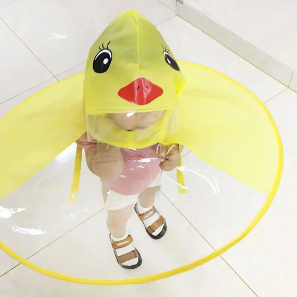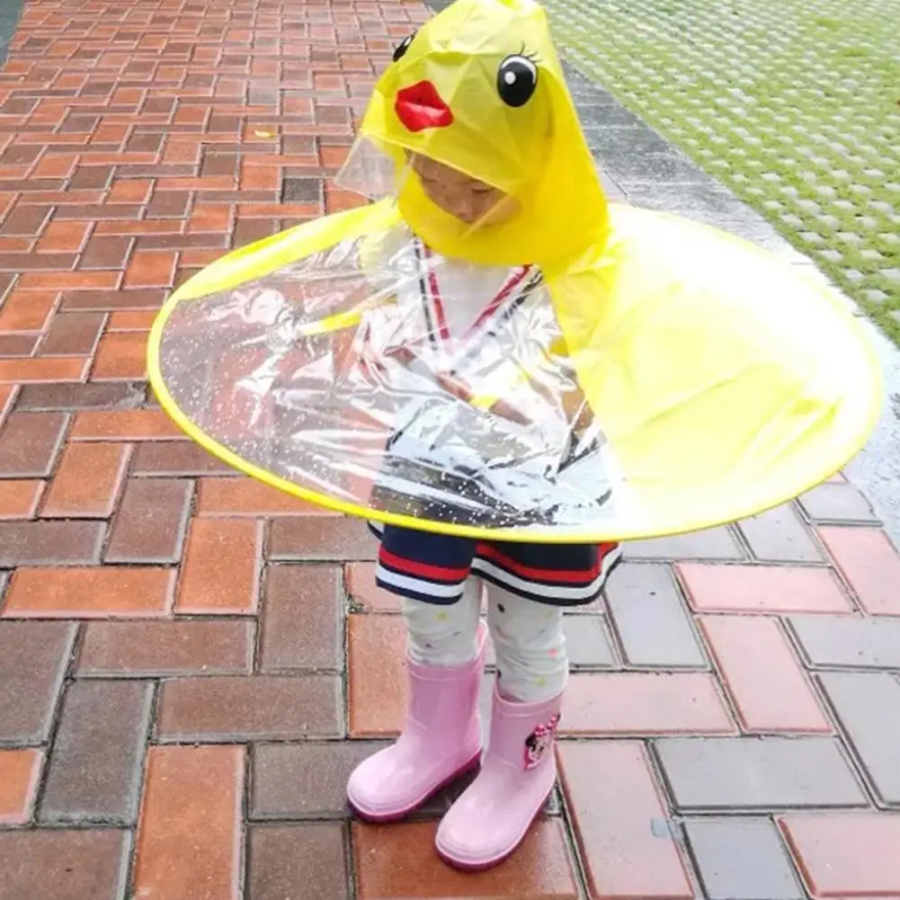 AsyPets Children Cute Duck Raincoat UFO Umbrella Hat Hands Free Rain Coat-25