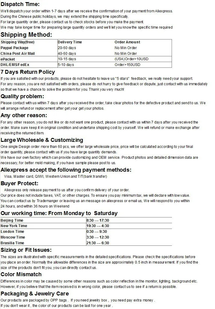 • Packaging:Each on OPP Bag,if you need the box,you can click here to buy it