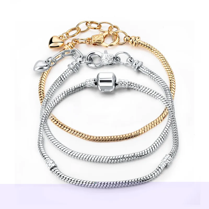 • Name:2018 Crystal Jewelry Snake Chain Bracelet Silver/Gold Plated Charm Bracelets Bangles DIY Pulseras SBR150212