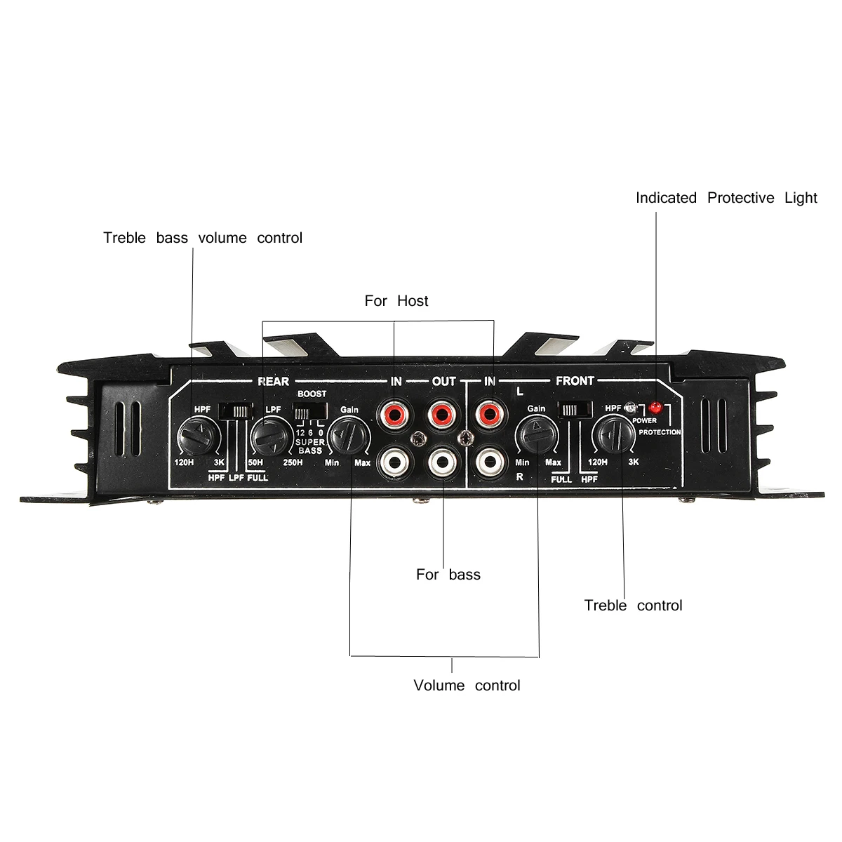 6. 4 ohm rated power: 200W*4CH