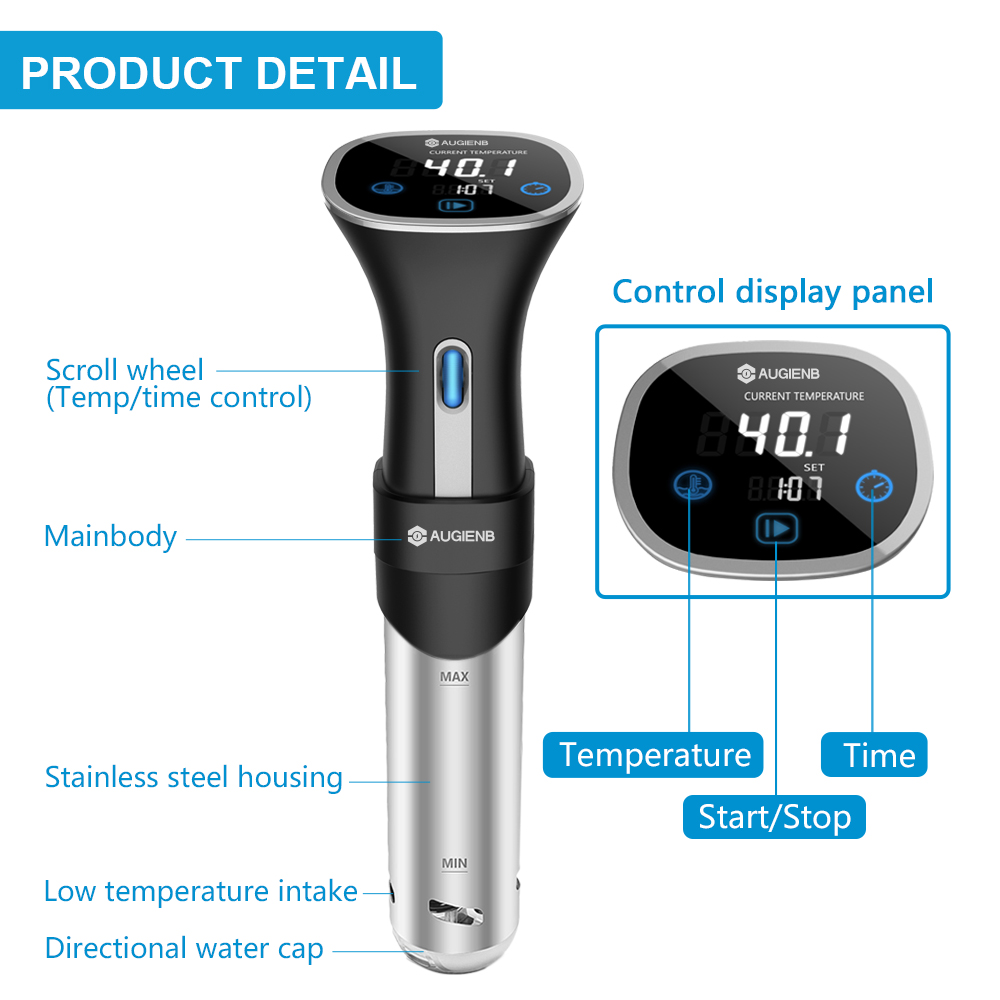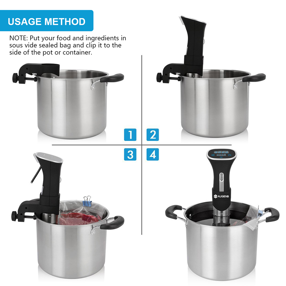 ✔Powerful and Flexible — AUGIENB Sous Vide Machine has a powerful pump that keeps liquid temperature throughout the cooking bath uniformly, allow you have a bigger window of time to play with if you are multitasking in the kitchen.