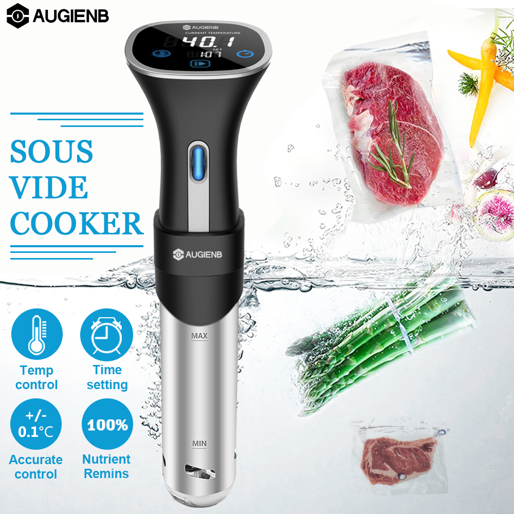 AUGIENB 800W Sous Vide Cooker, Thermal Immersion Circulator Machine with Large Digital LCD Display, Time and Temperature Control, Quiet & Accurate, Stainless Steel Tube