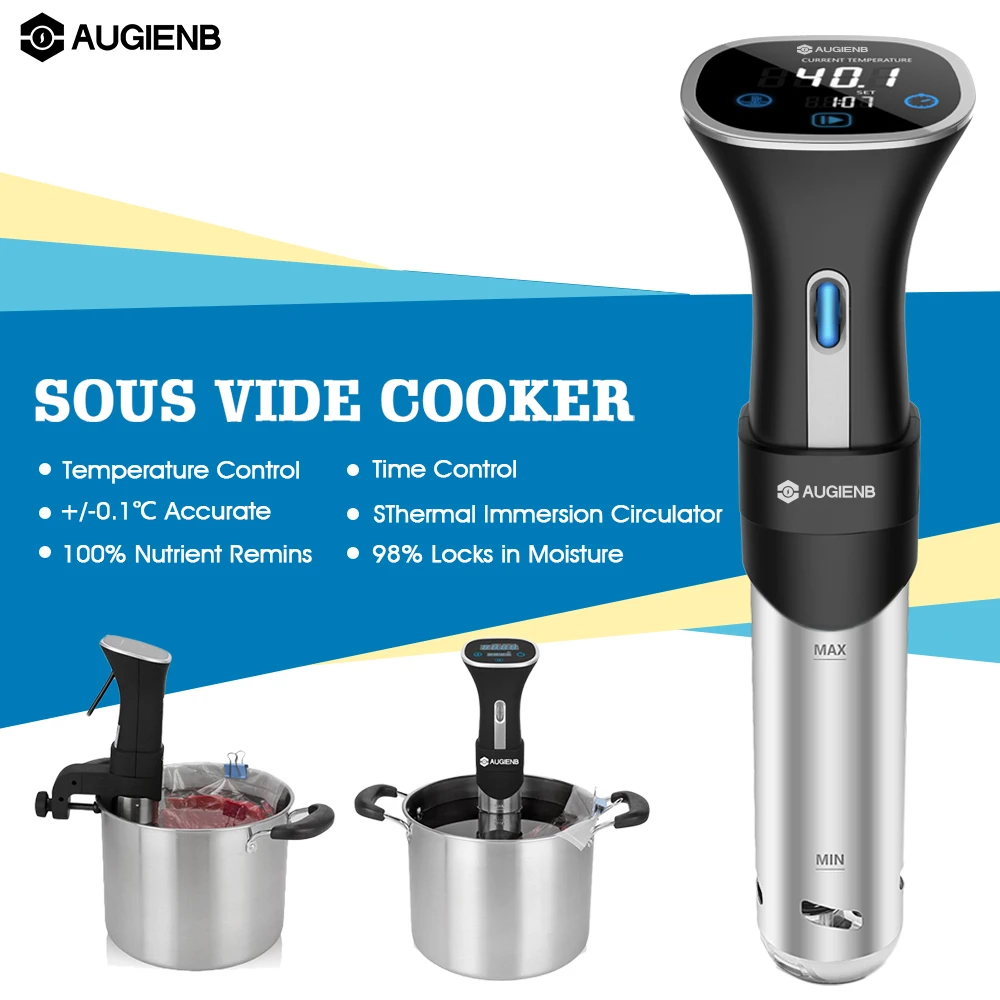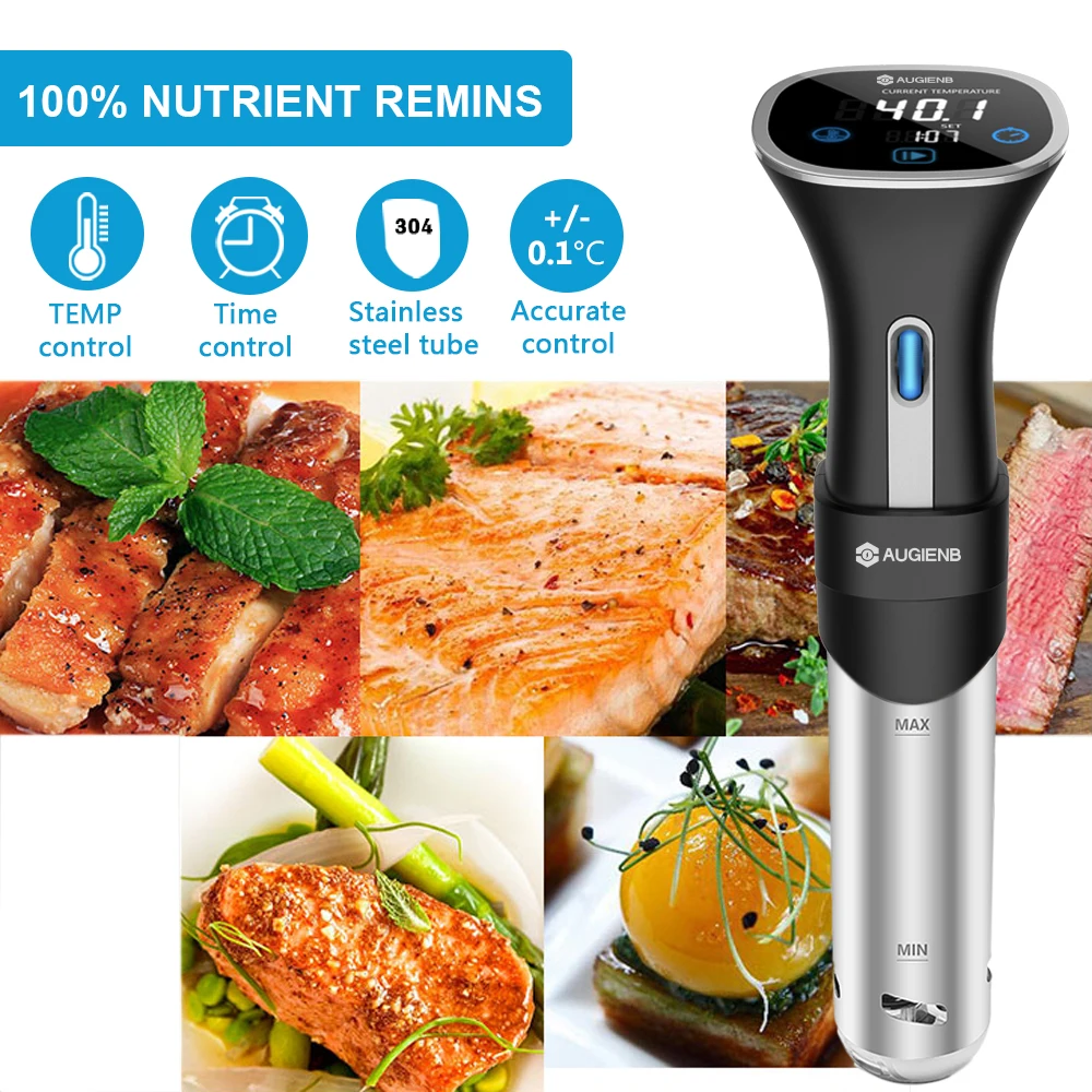 AUGIENB 800W Sous Vide Cooker, Thermal Immersion Circulator Machine with Large Digital LCD Display, Time and Temperature Control, Quiet & Accurate, Stainless Steel Tube