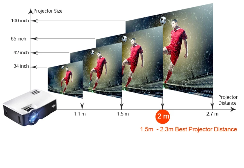 Experience Based 1.38:1 throw ratio. Best projector size:40-80inch