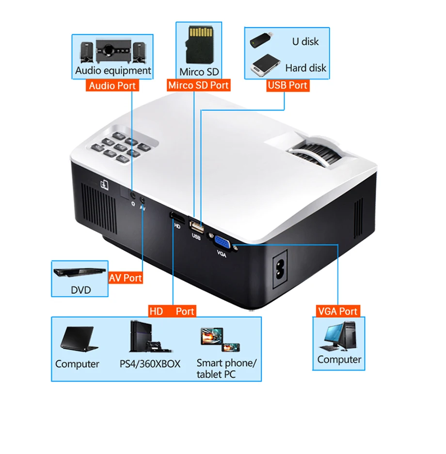 Support connect TV BOX, Smartphone, computer, USB flash disk, DVD Play, DV, Xbox, PS4, and so on.