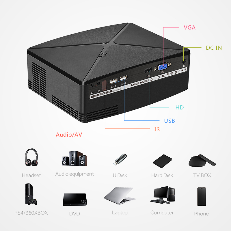 Connecting the C80 with Couputer, TV BOX, TV Stick, U disk, XBOX, PS4 and so on.