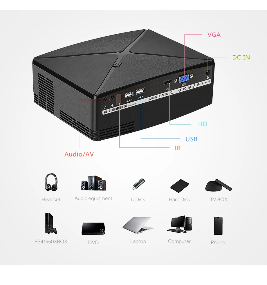 Connecting the C80 with Couputer, TV BOX, TV Stick, U disk, XBOX, PS4 and so on.