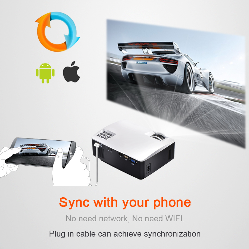 * Support Synchronize projector with smartphone through USB cable. (IOS phone no need app, plug and display)