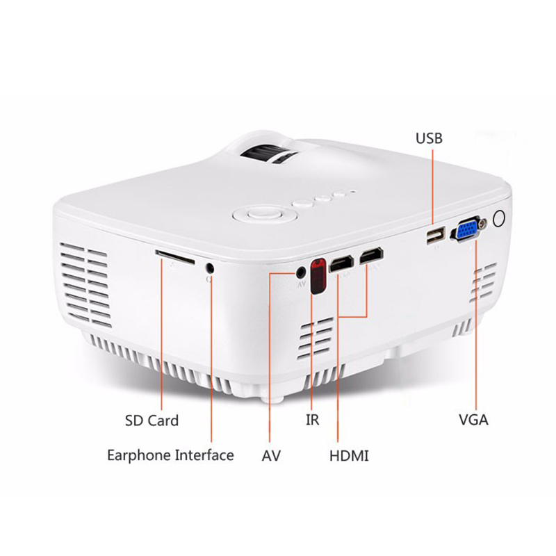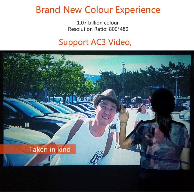 Brightness: 1400 Lumens (peak value 1800) contrast ratio: 2000:1 Resolution ratio: 800 x 480. support 1080P keystone correction: vertical +/- 15 Lifetime: 20,000 hours |