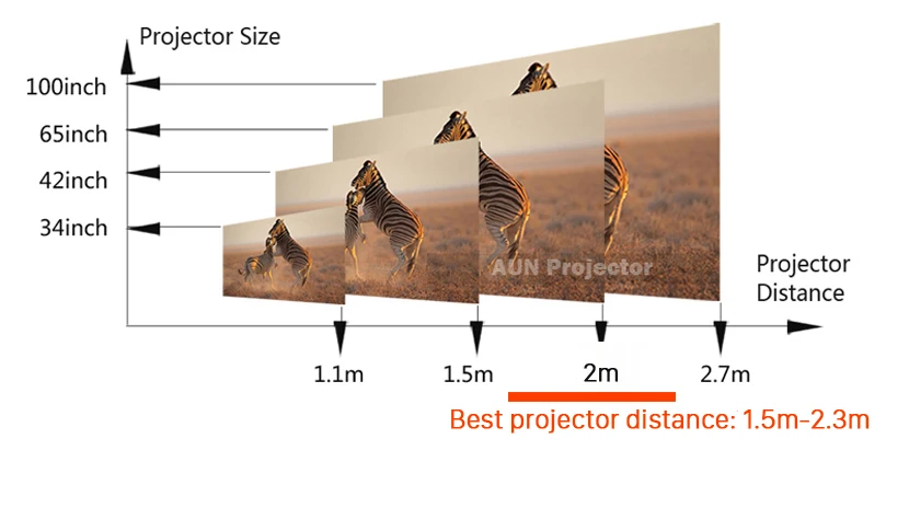 Projector size: 28-120inch Best projector size: 30-80inches |