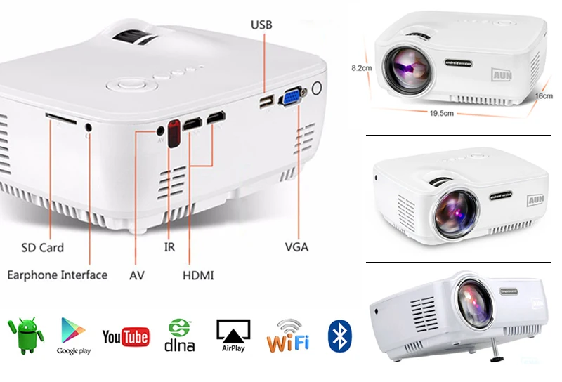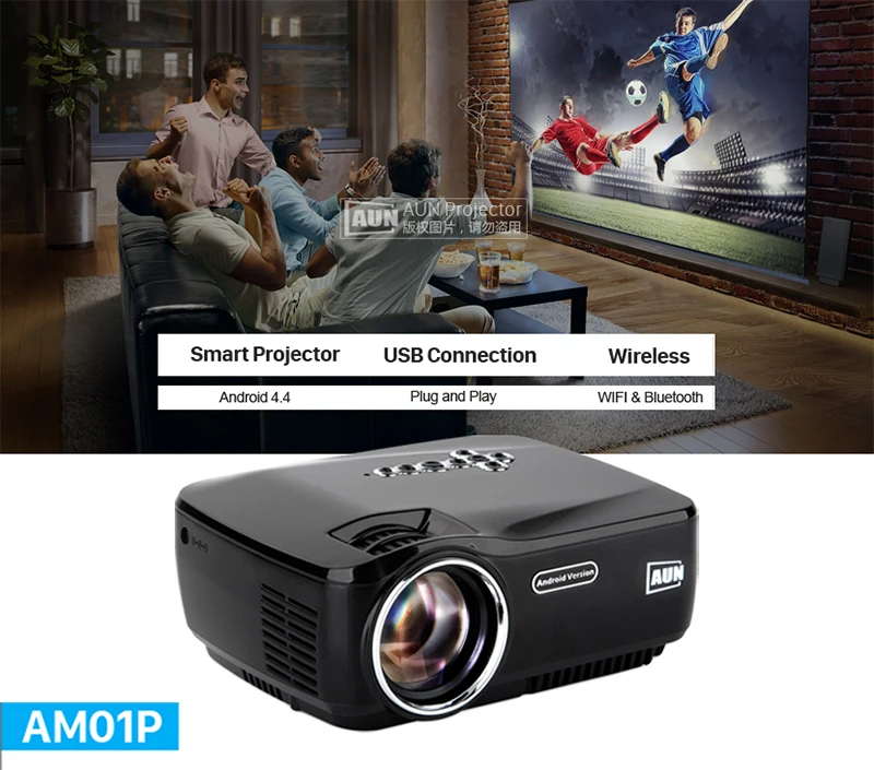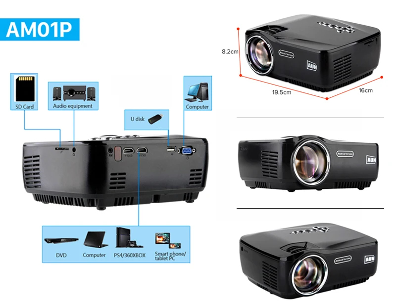 AM01P ( Android 4.4 System ) AM01P 1800 Lumens LED Projector Set in Android 4.4 WIFI Bluetooth Support Miracast Airplay KODI AC3 |