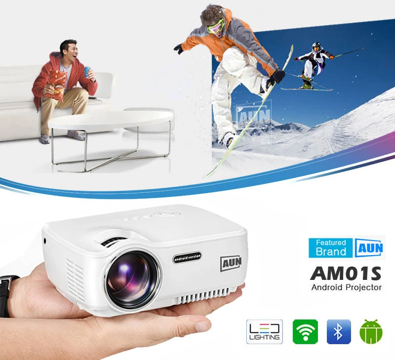 AM01S ( Android 4.4 System ) AM01S 1800 Lumens LED Projector Set in Android 4.4 WIFI Bluetooth Support Miracast Airplay KODI AC3 |