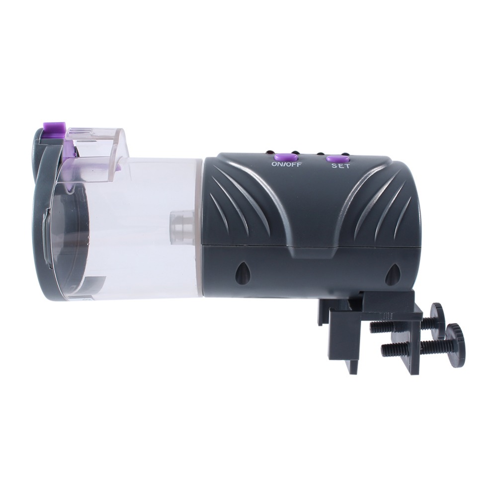 This fish feeder can feed fish automatically(for flake, pellet and tablet food) when you are away from home. It adopts DC micro-motor to control, environmental-friendly plastic material. Safe to use. Adjustable switch is convenient for you to adjust the food outlet according to the fish needs.
