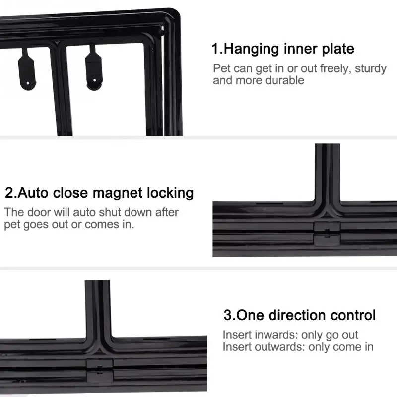 - Designed with strong magnet, this door will auto shut down after pet goes out or comes in.