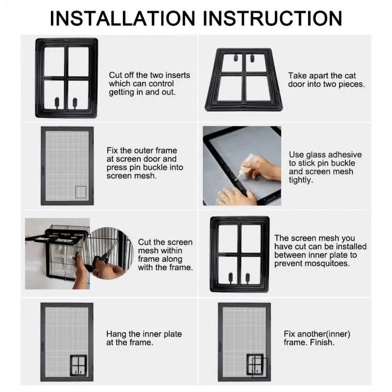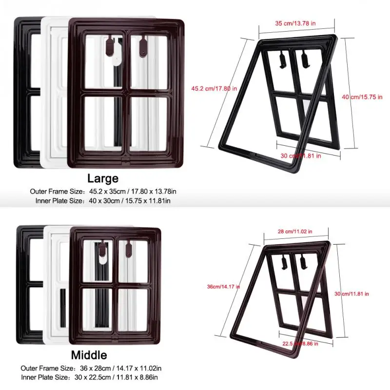 This cat door is made of durable and sturdy plastic, with simple window-like design. Interior and exterior two pieces design, easy to install, suitable for screen door and window. Magnetic door will auto close after pet’s movement. Great for pet cats and dogs to give them a comfortable environment.