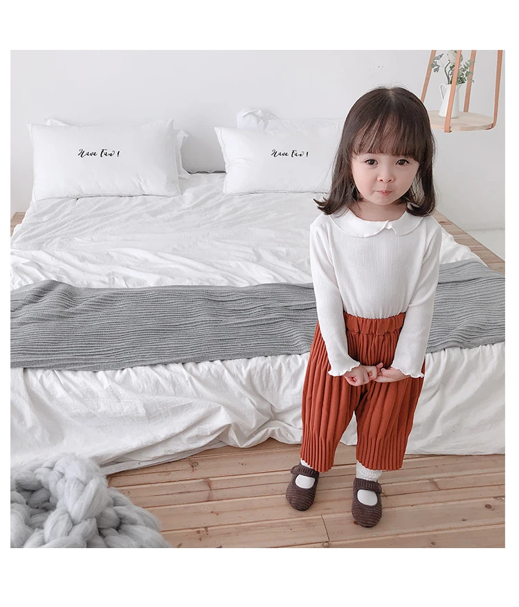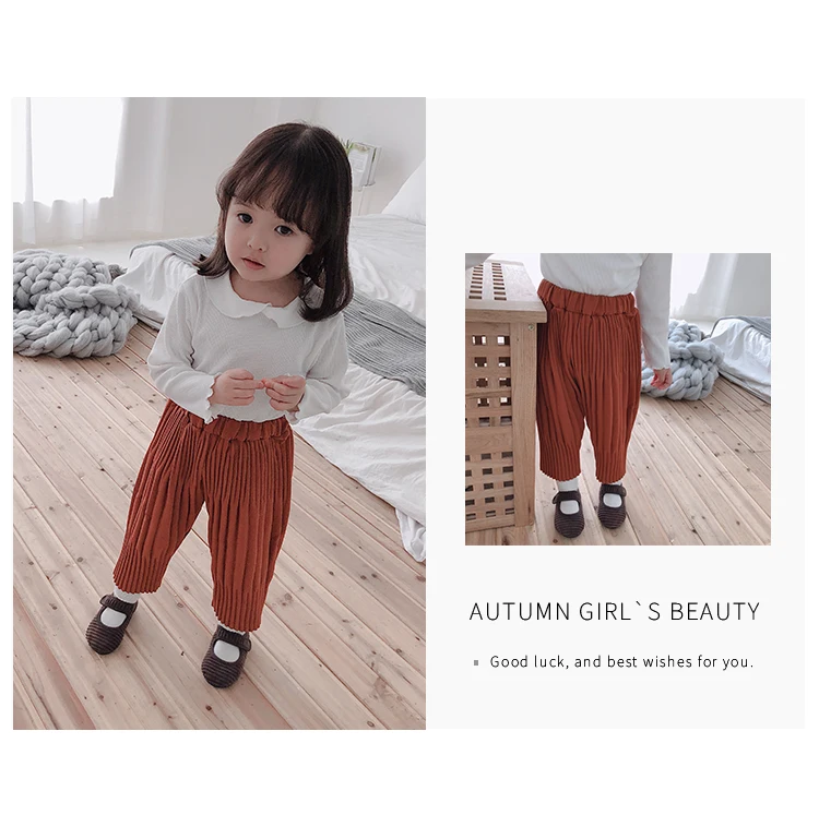 Autumn 2018 Korean style girls fashion pleated Turnip pants infant kids loose all-match ankle-length harem pants 1-6Y