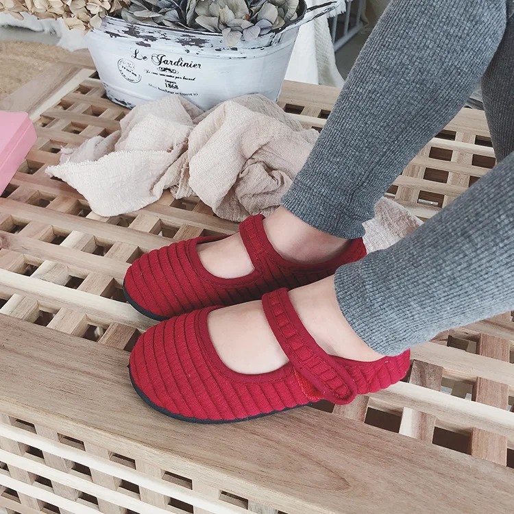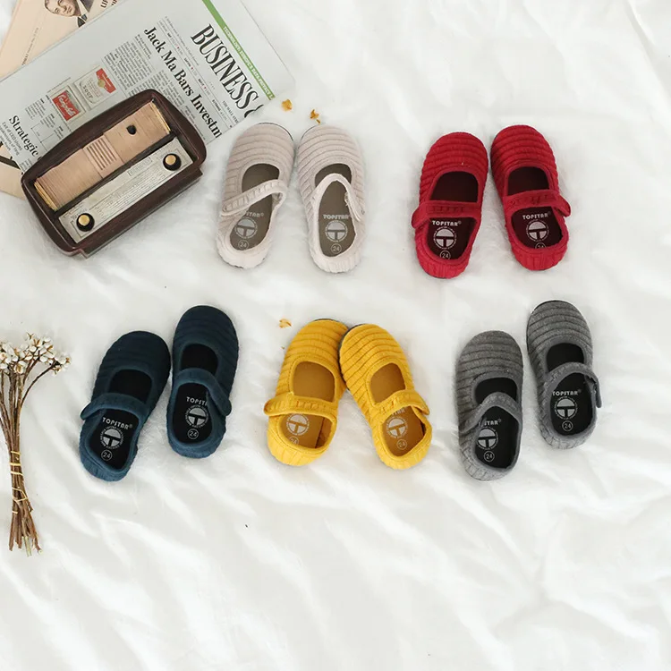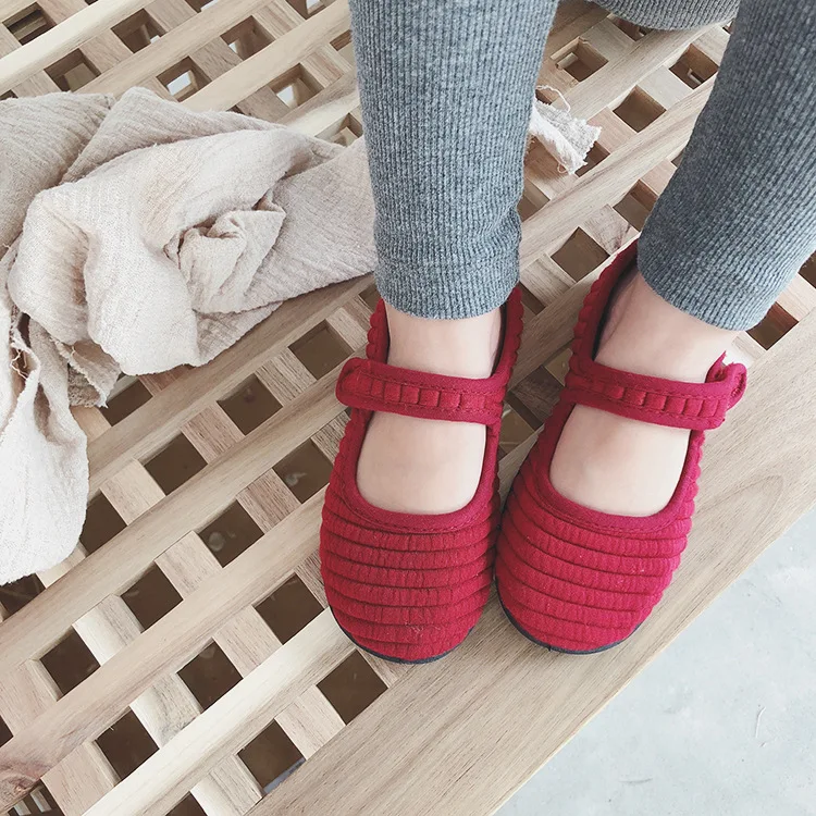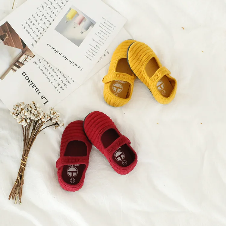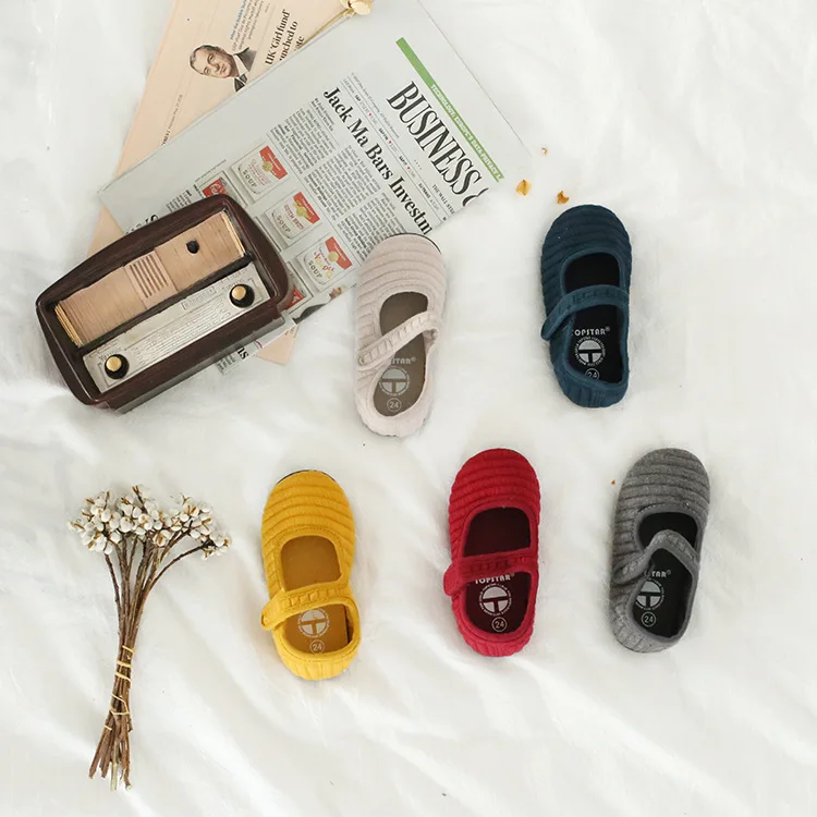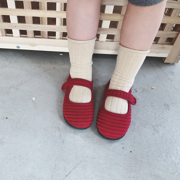 Autumn Baby girls vintage glove shoes Korean style kids casual cloth shoes children all-match HOOk&LOOP Soft sole antiskid shoes