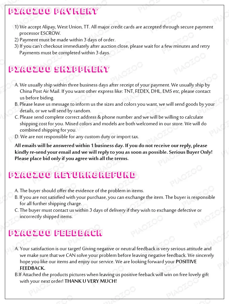 We are not responsible for any custom fees once the items have shipped. By purchasing our products, you consent that one or more packages may be shipped to you and may get custom fees when they arrive in your country.