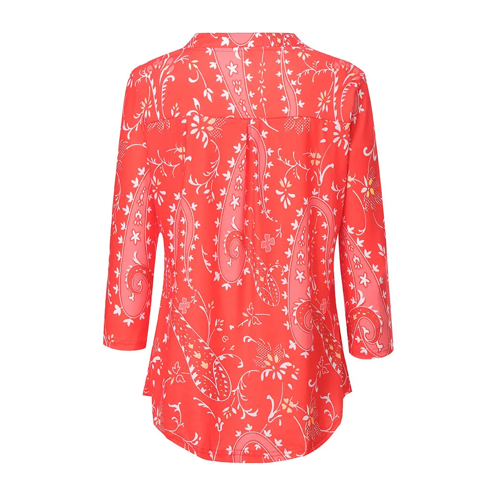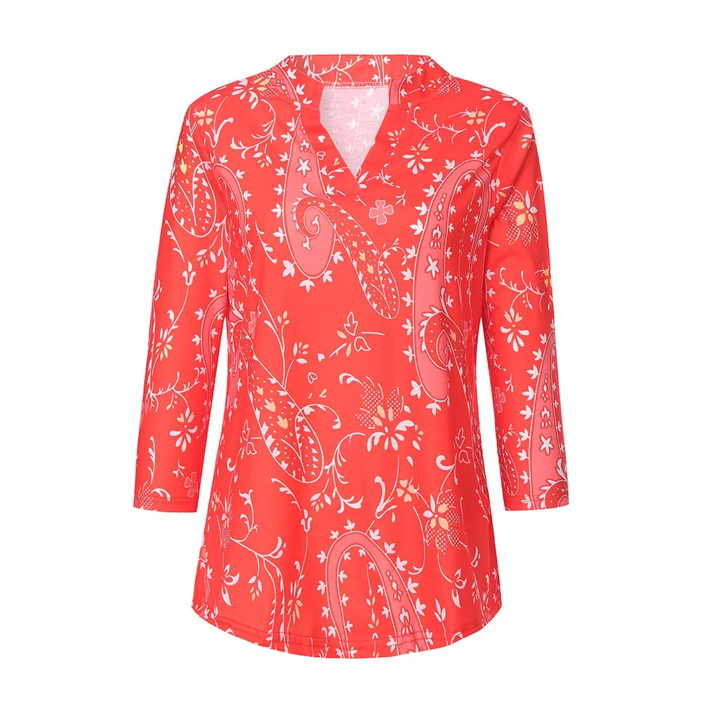 Womens Autumn Loose Long Sleeve Women’s Floral Print Round Neck Blouse Tops