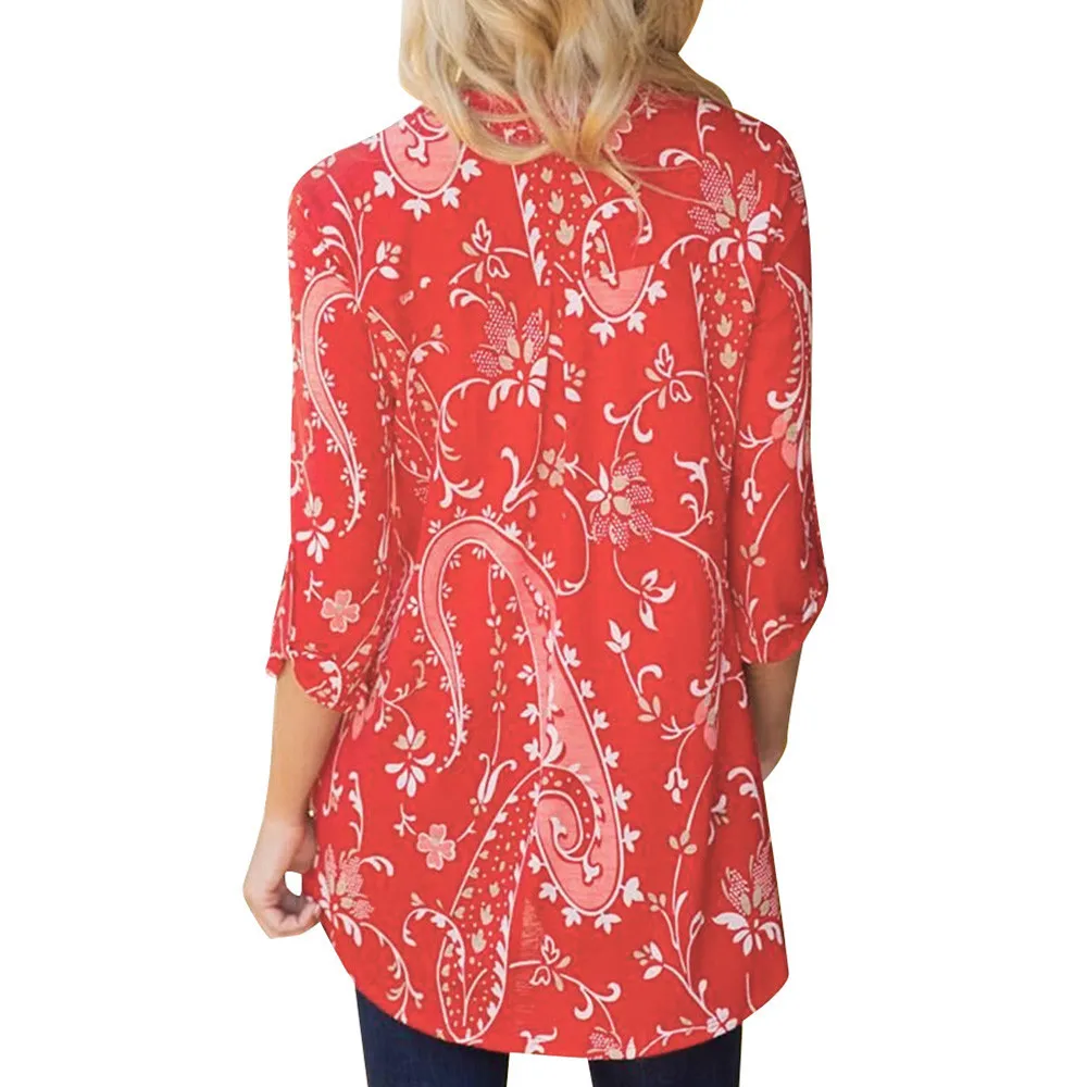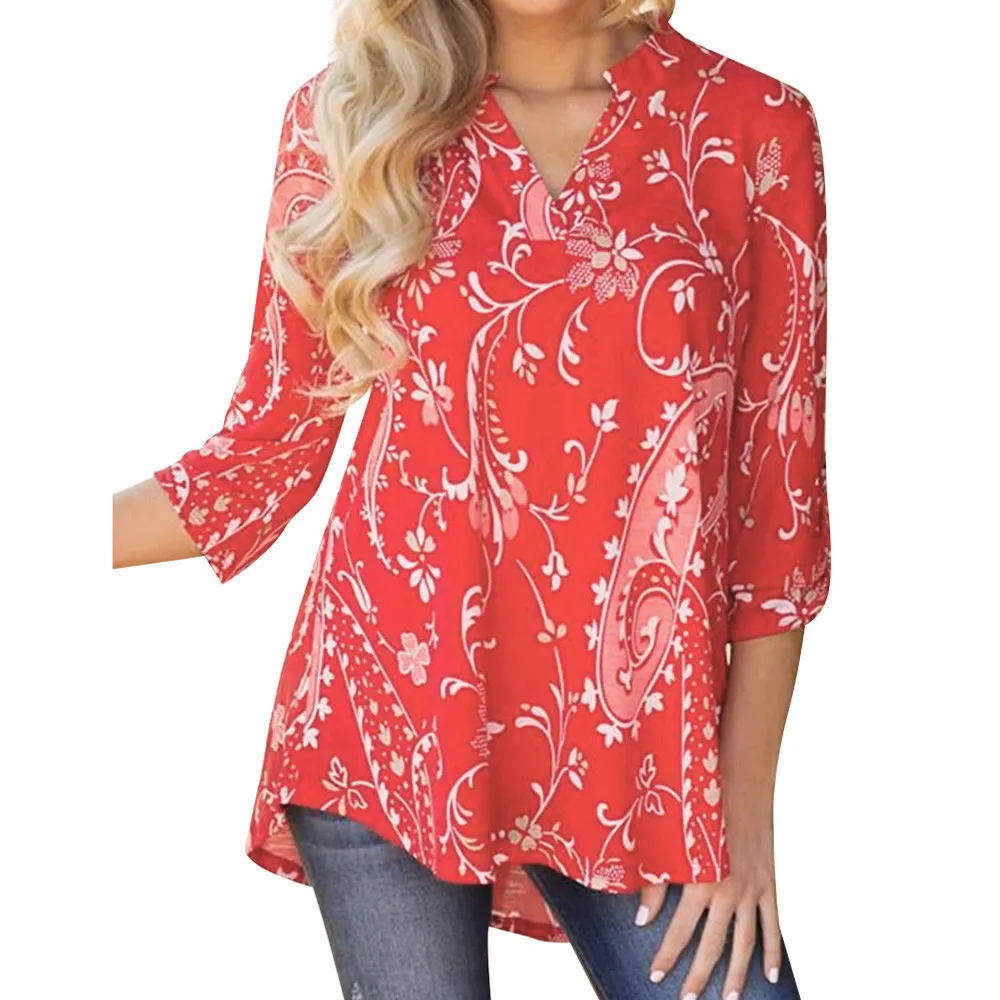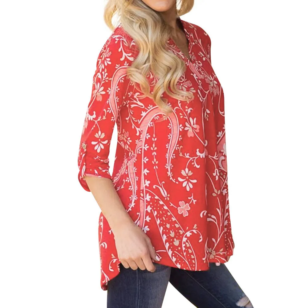 Autumn New Fashion Women Blouse Long Sleeve Casual Tops Loose Long Sleeve Women Floral Print Round Neck Blouse Tops Femme