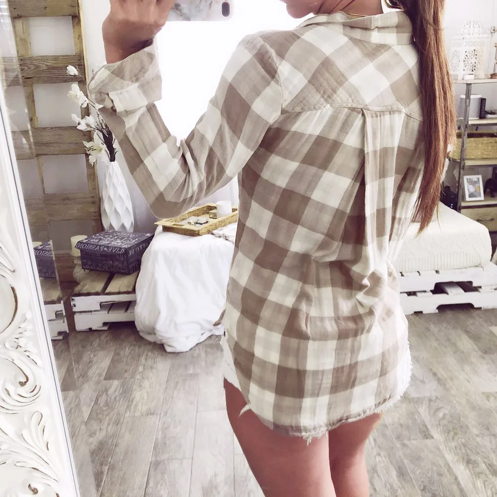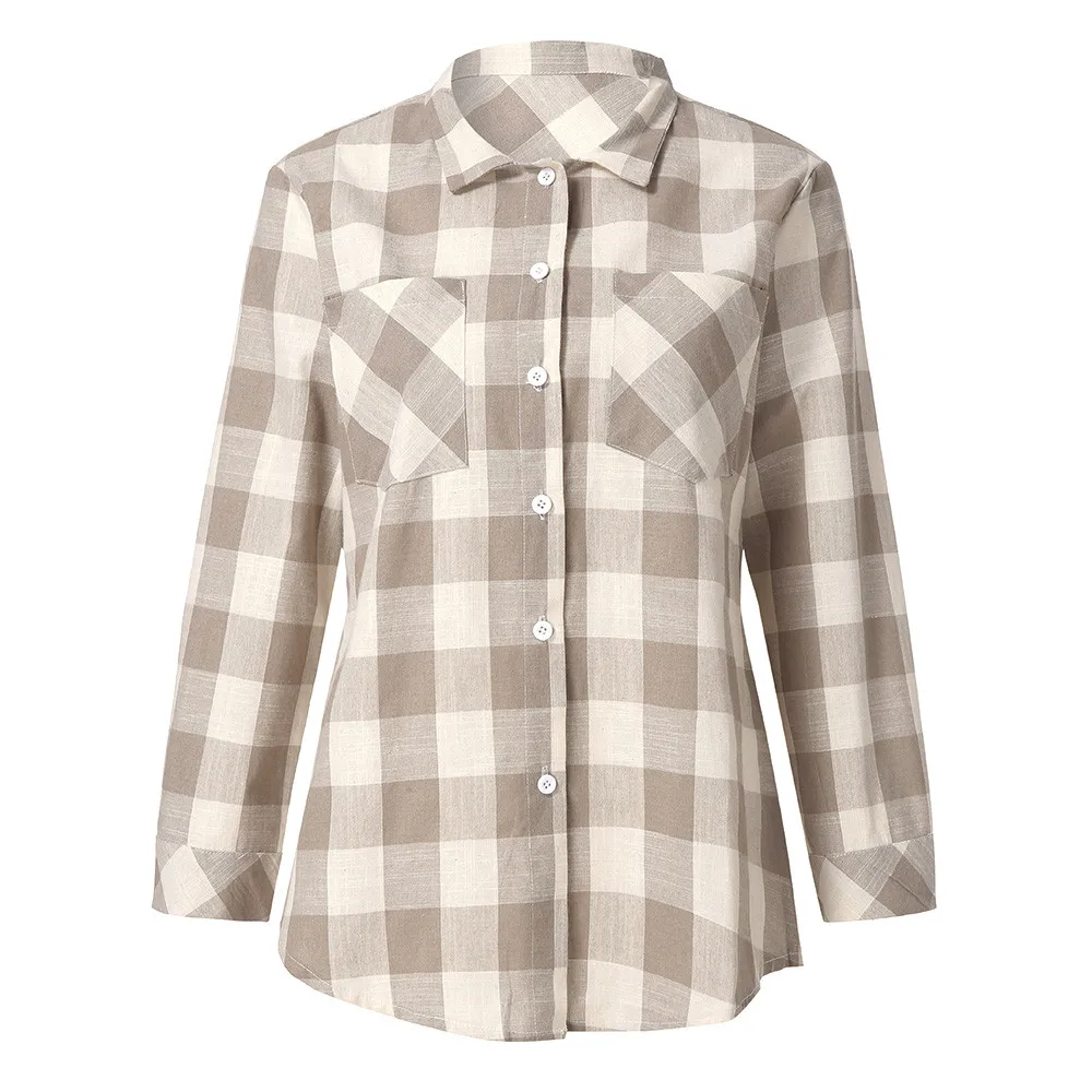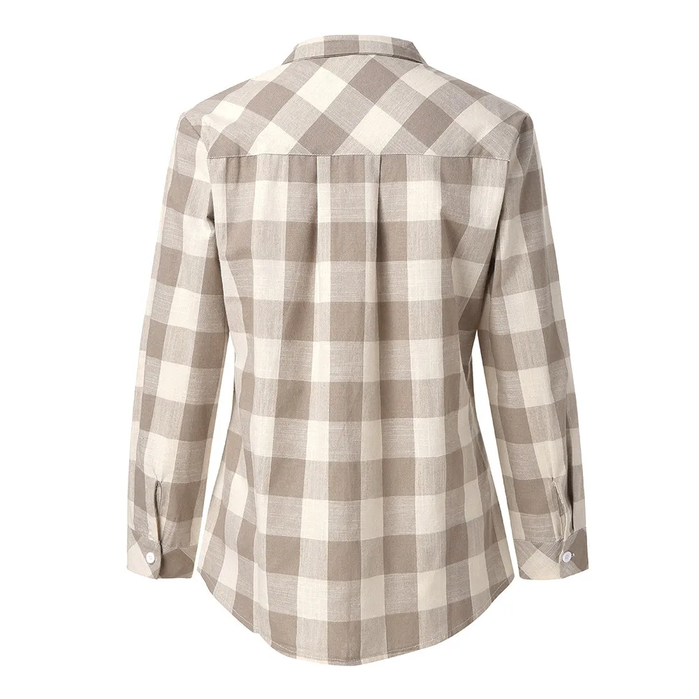 Autumn New Fashion Women Blouse Long Sleeve Casual Tops Matching Color Long Sleeve Button Loose Plaid Shirt Femme Blouse Top