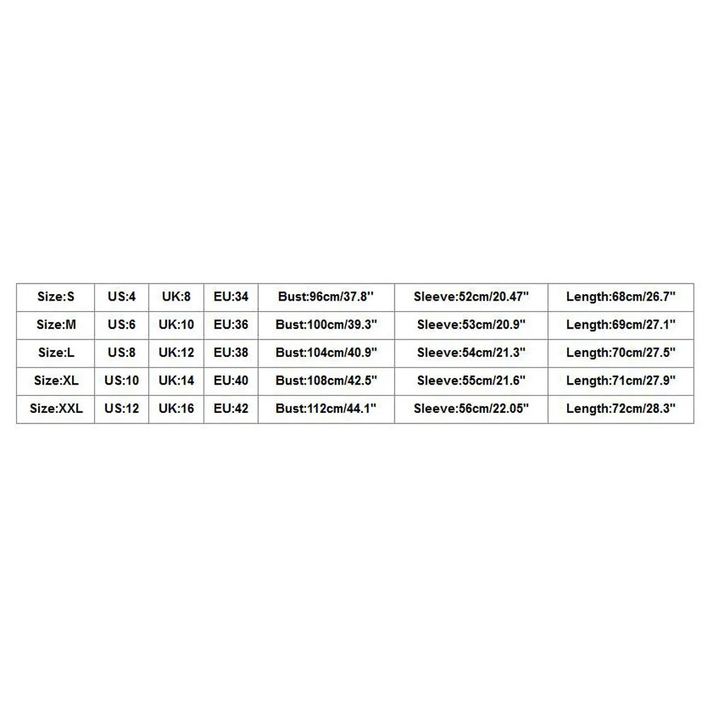 Size US UK EU Bust Sleeve Length