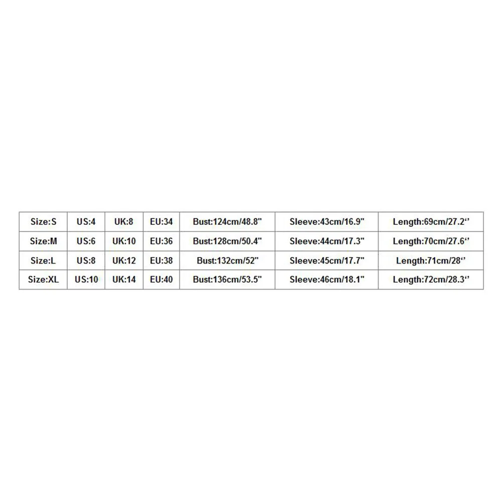 Size US UK EU Bust Sleeve Length