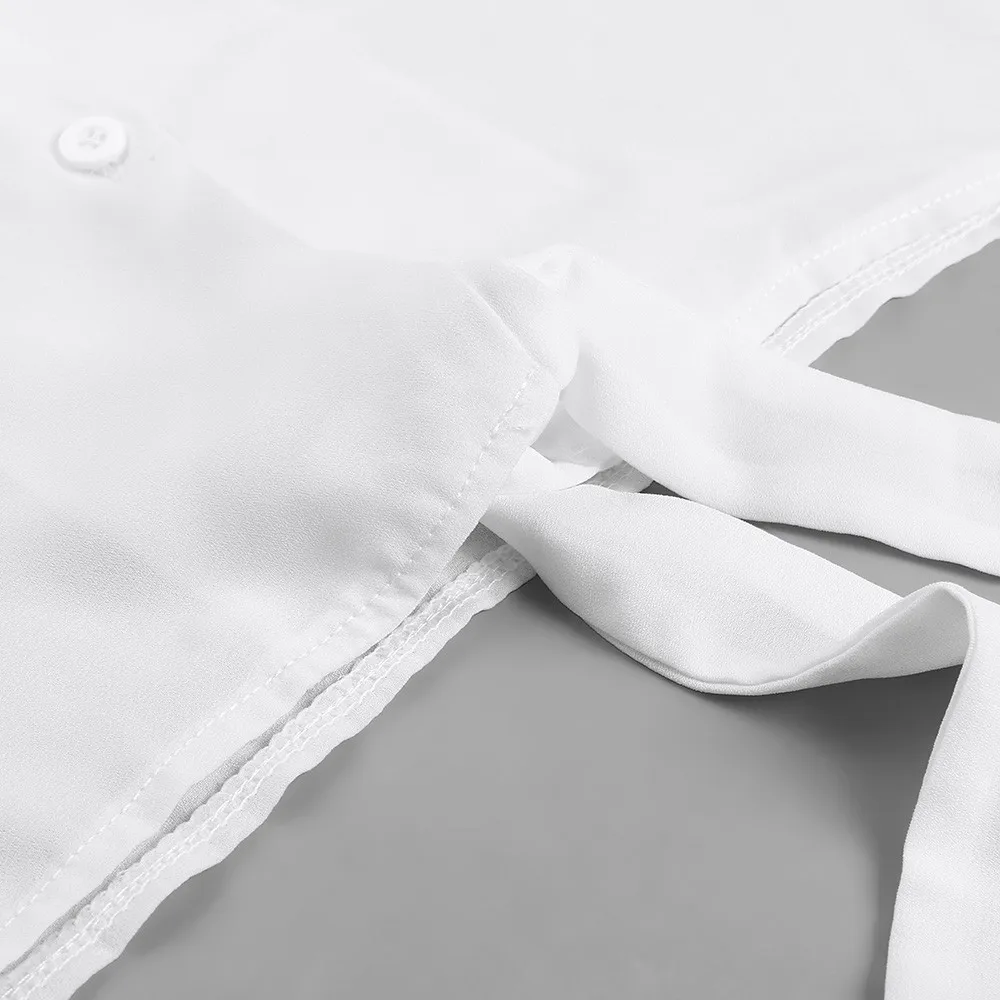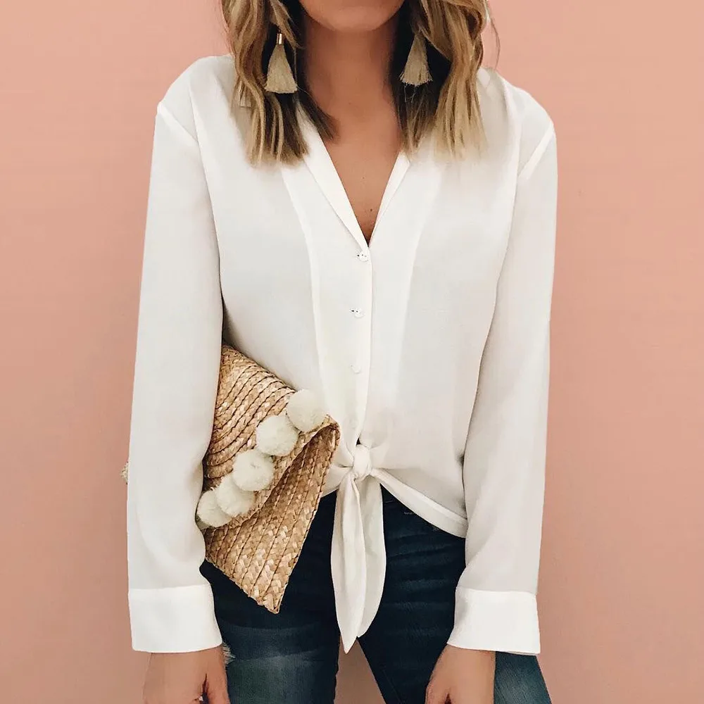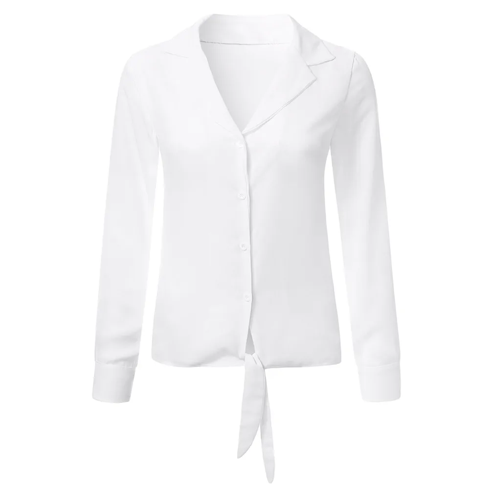 Autumn New Fashion Women Long Sleeve Casual Tops Open Front Solid V-Neck Long Sleeved Bandage Shirt Top Blouse Femme