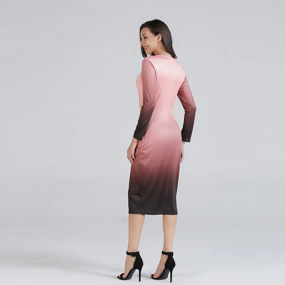 Autumn Print Dress Casual Floral Bowknot Casual Party Dress Long Sleeve Elegant Vestido Knit Bodycon Dresses